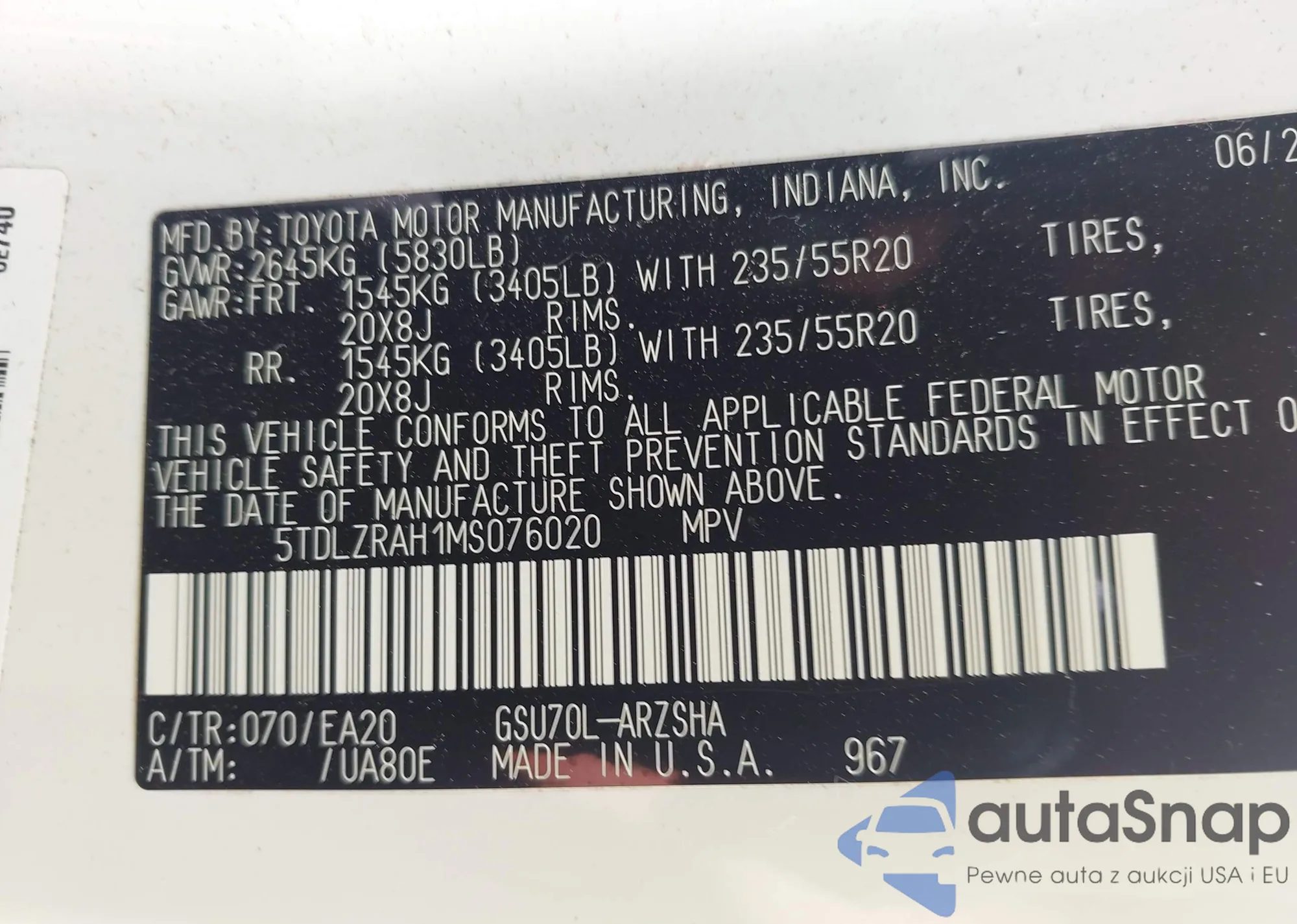 VIN: 5TDLZRAH1MS076020