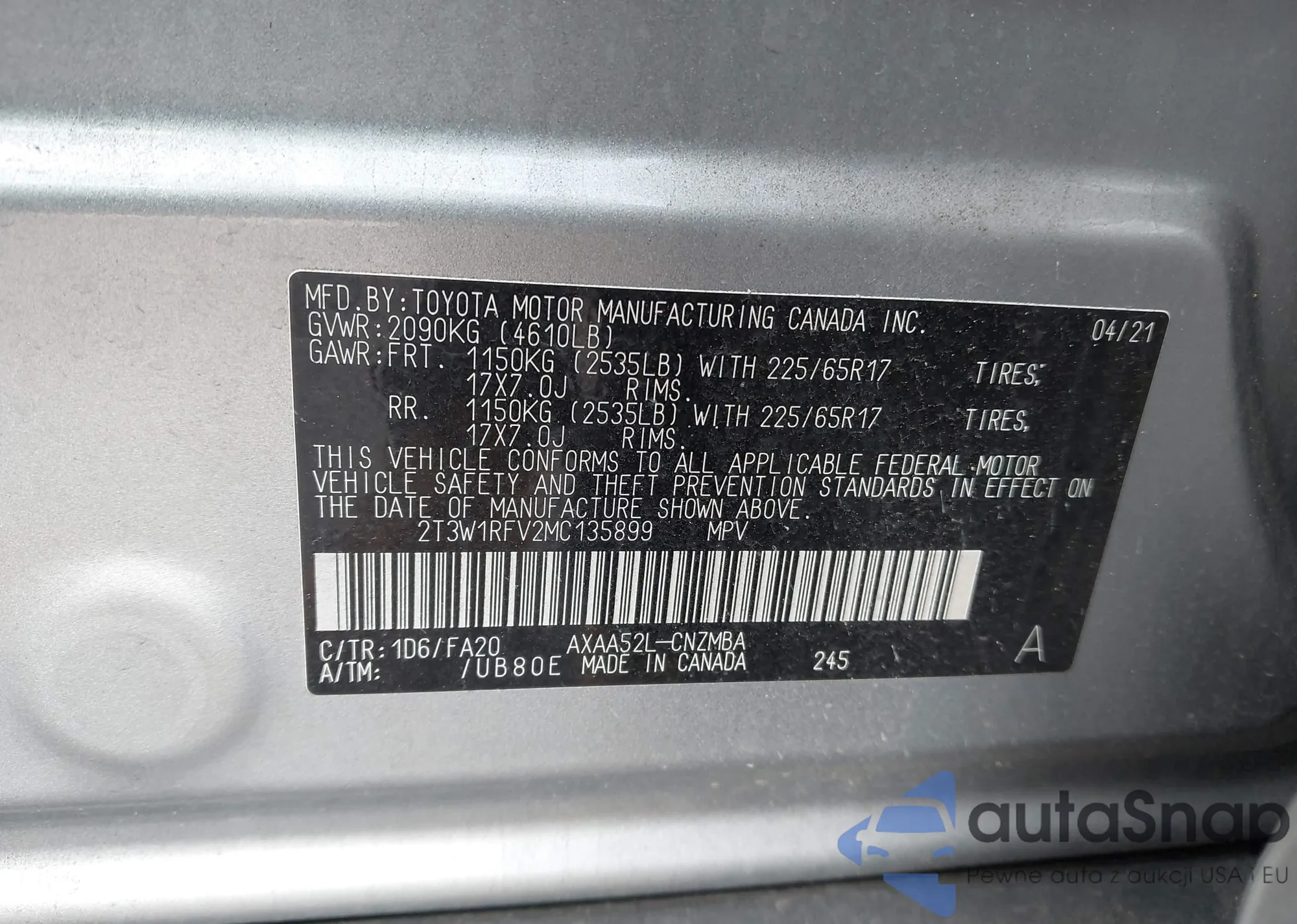 2T3W1RFV2MC135899 IAAI