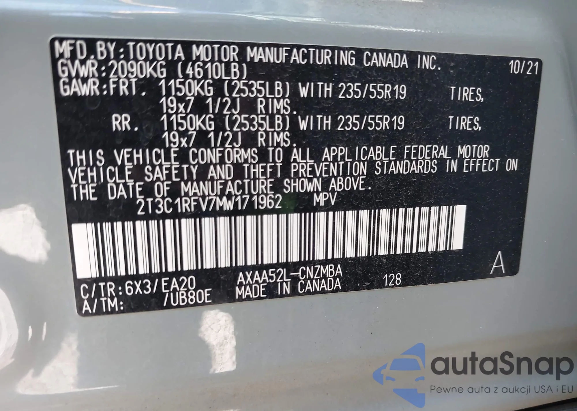 • VIN: 2T3C1RFV7MW171962