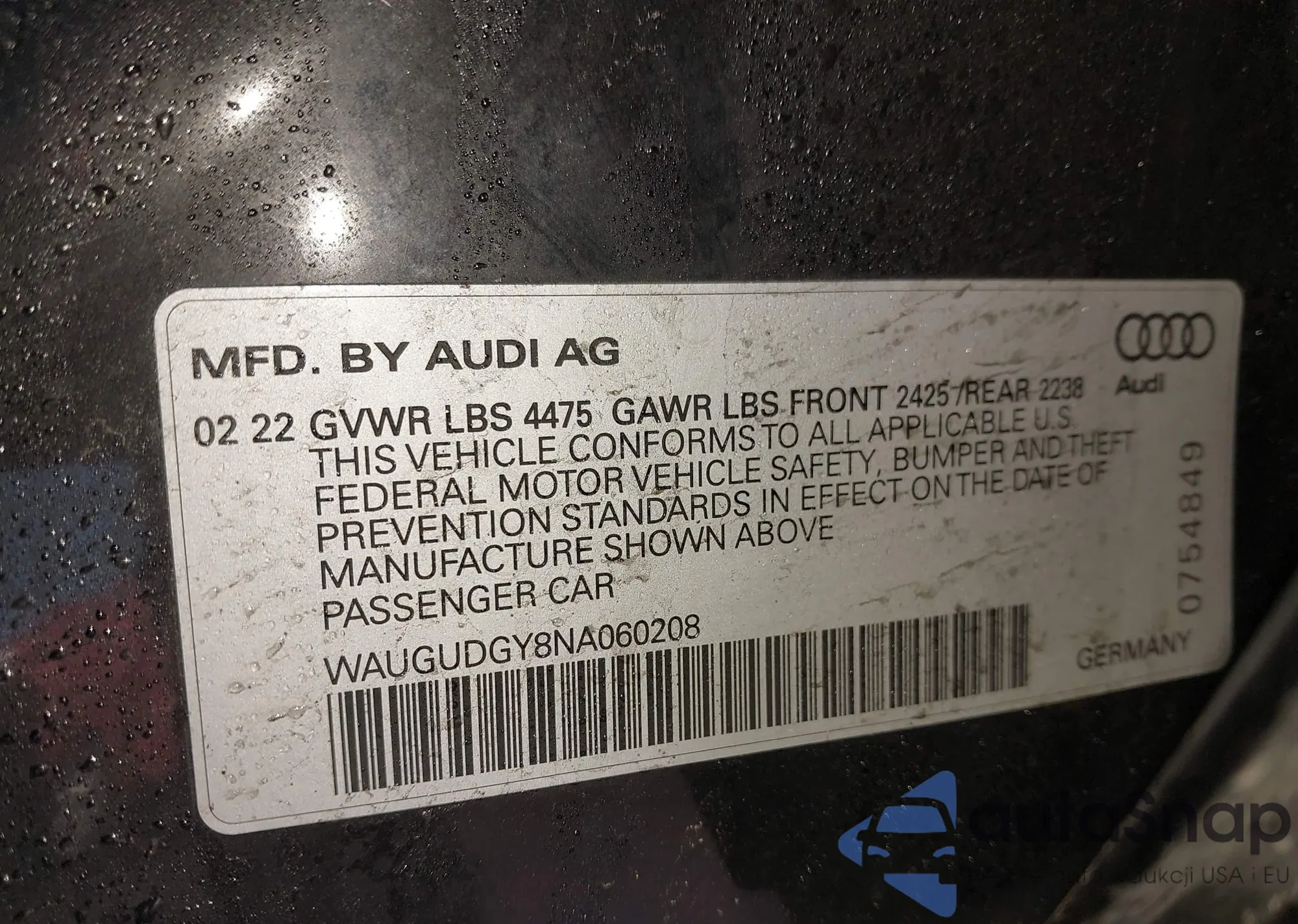 • VIN: WAUGUDGY8NA060208