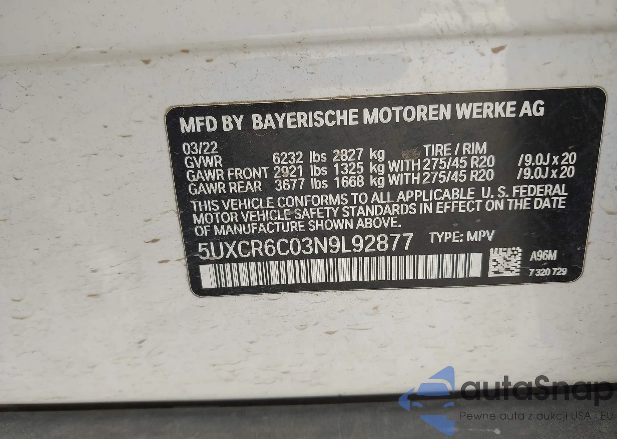 Samochód BMW X5 2022 (VIN 5UXCR6C03N9L92877) nie był wcześniej licytowany. Dokumenty są czyste, przebieg odpowiada lub jest niższy niż średnia rynku. Sprzedaje go firma ubezpieczeniowa – polecamy zakup. Dostawa do portu zajmie ok. 6–8 tygodni.
