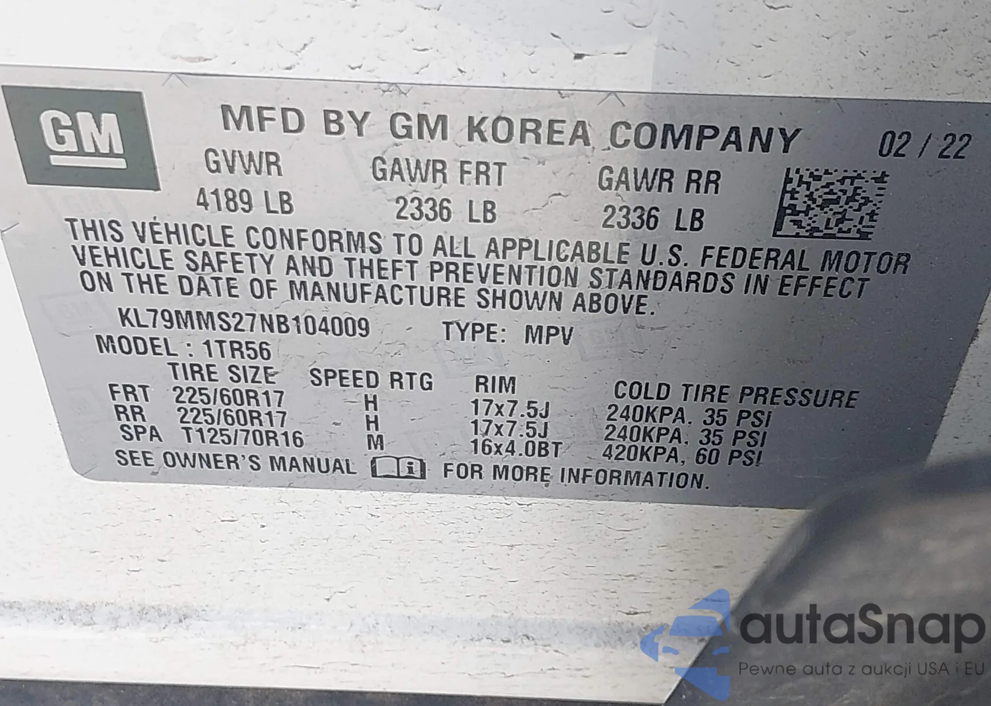 VIN: KL79MMS27NB104009