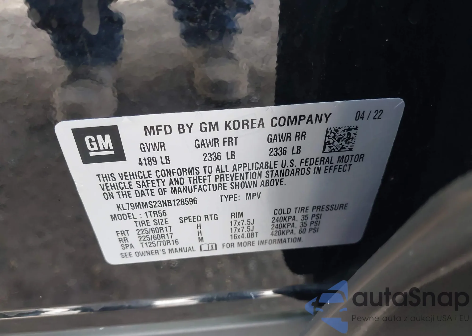 • VIN: KL79MMS23NB128596