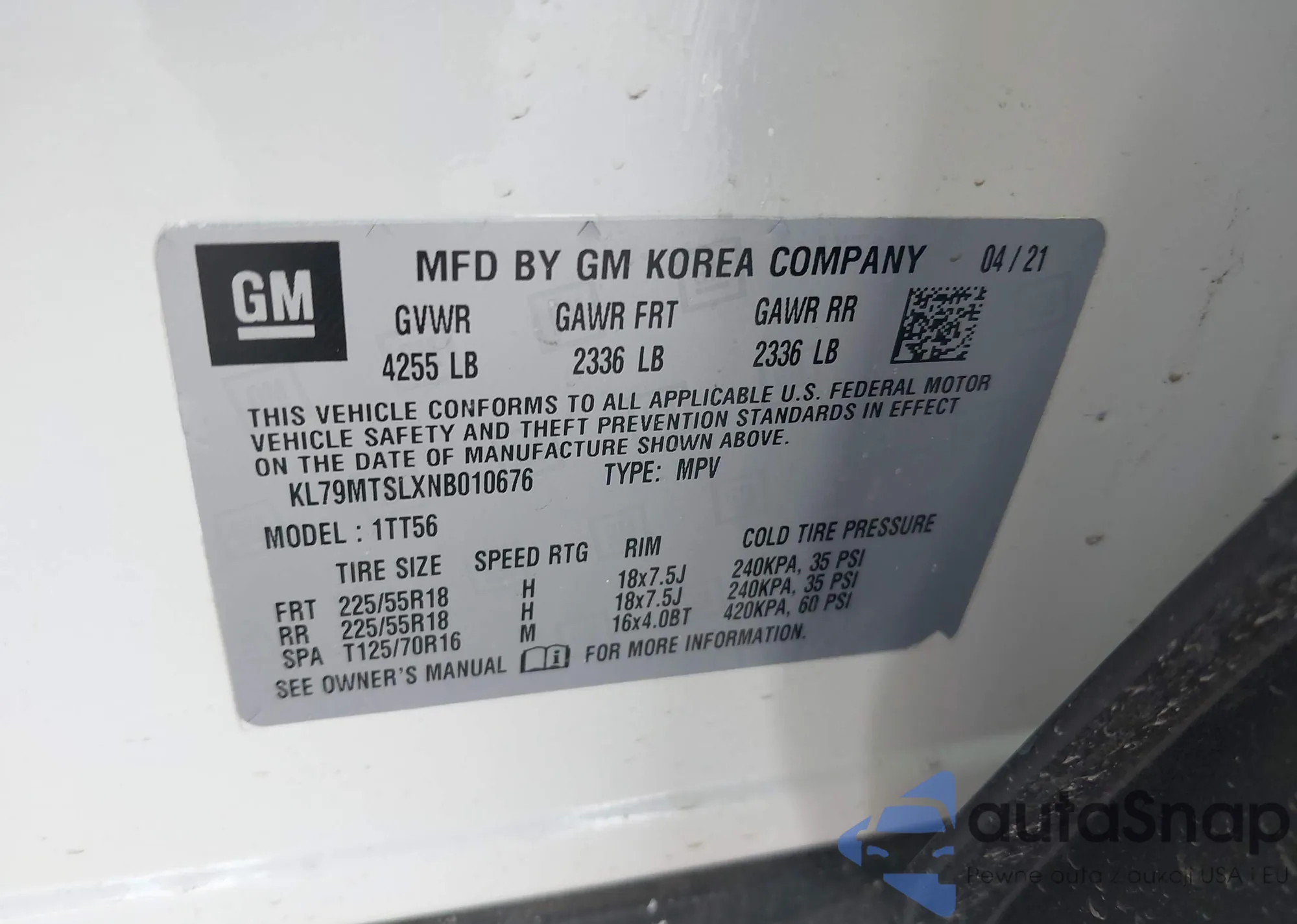Samochód Chevrolet TrailBlazer 2022 (VIN KL79MTSLXNB010676) nie był wcześniej licytowany. Dokumenty są czyste, przebieg odpowiada lub jest niższy niż średnia rynku. Sprzedaje go firma ubezpieczeniowa – polecamy zakup. Dostawa do portu zajmie ok. 6–8 tygodni.