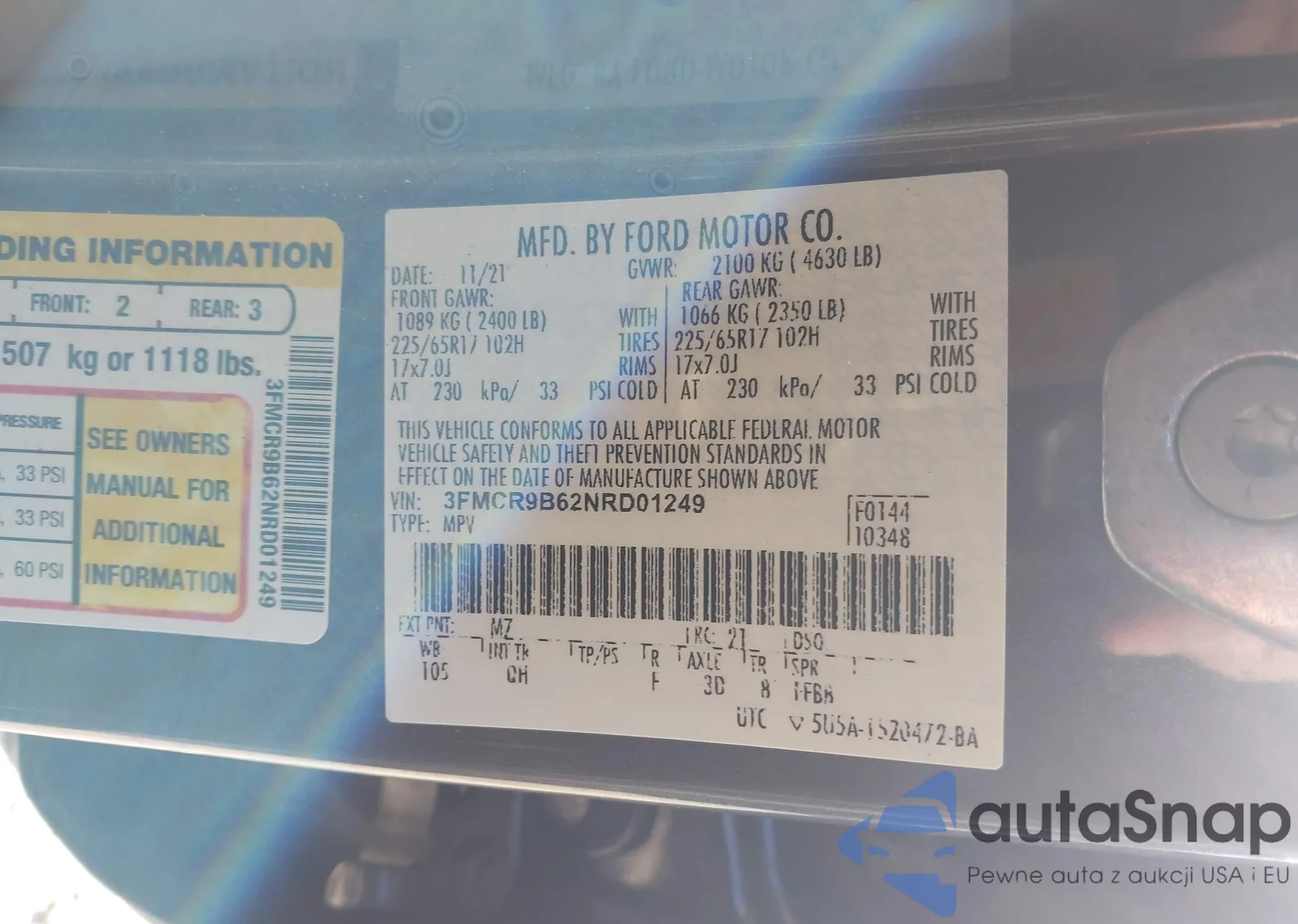 • VIN: 3FMCR9B62NRD01249