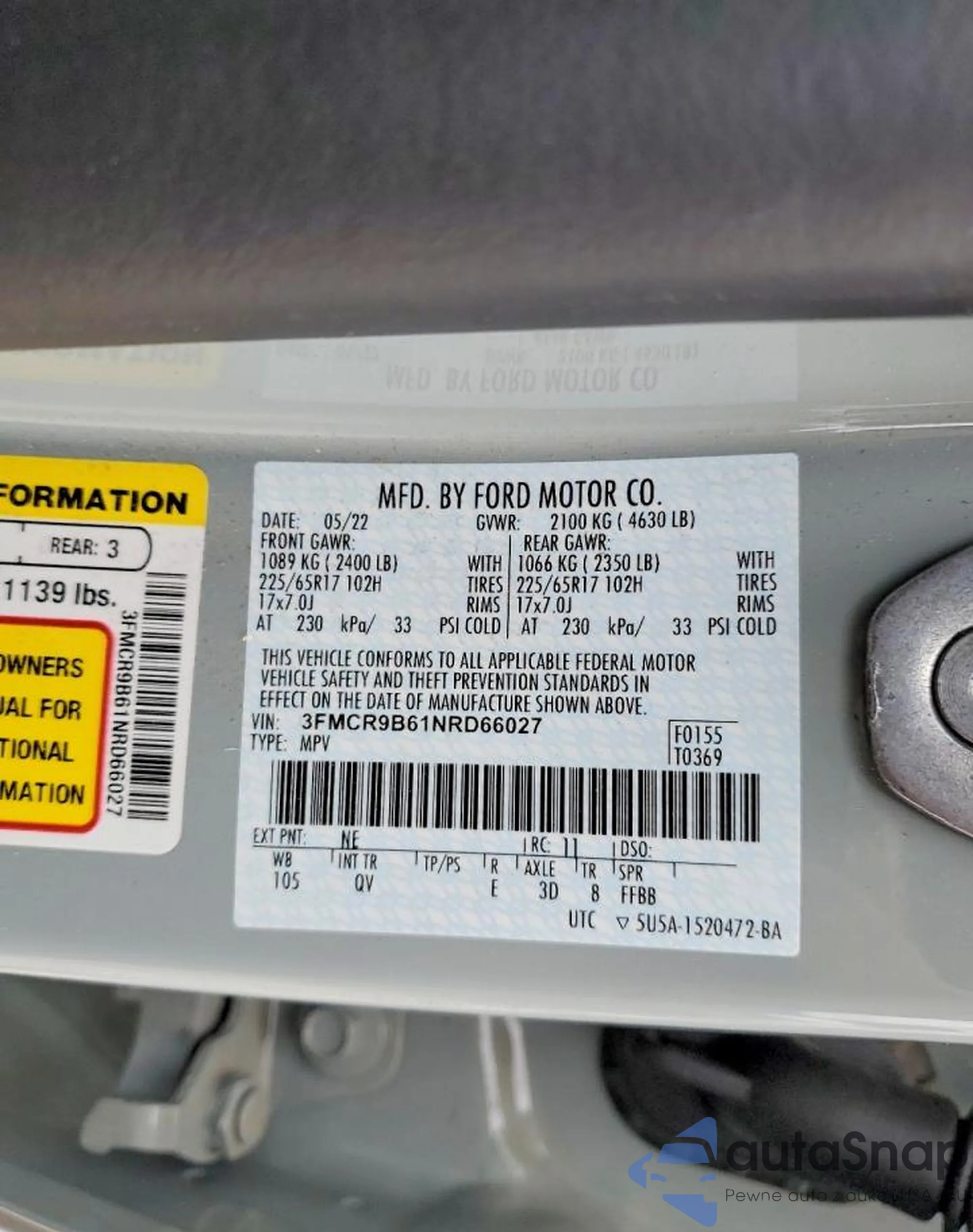 VIN: 3FMCR9B61NRD66027