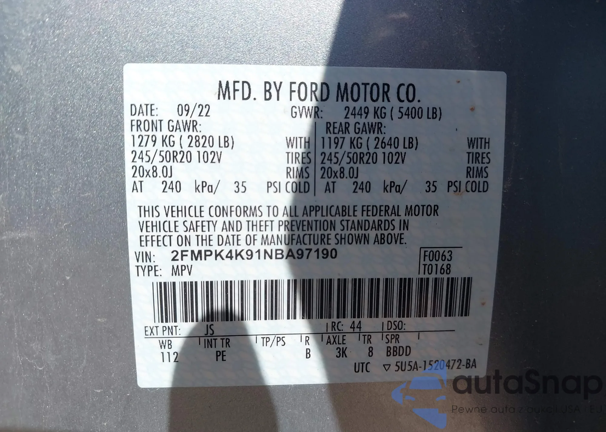 VIN: 2FMPK4K91NBA97190