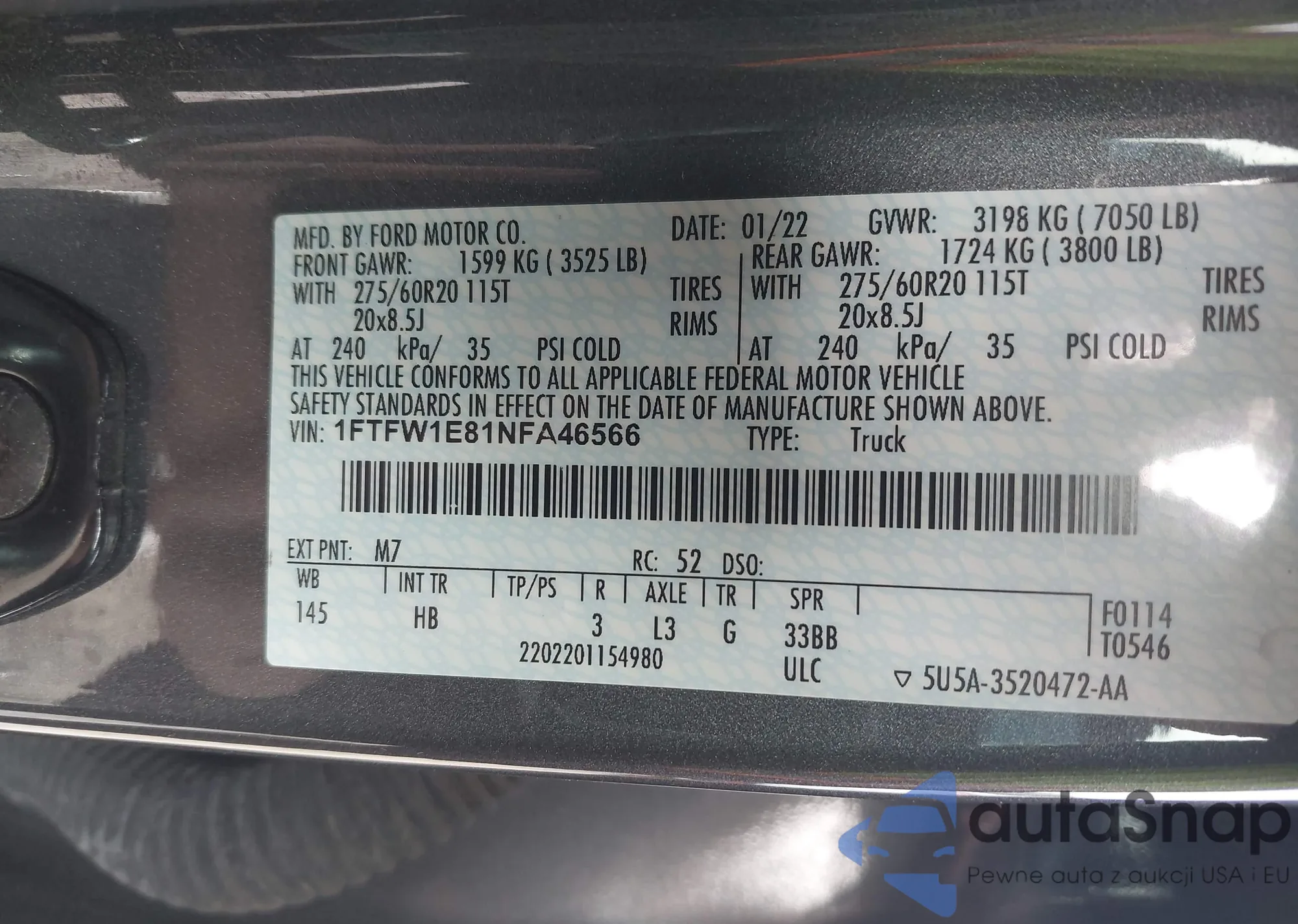 1FTFW1E81NFA46566 IAAI