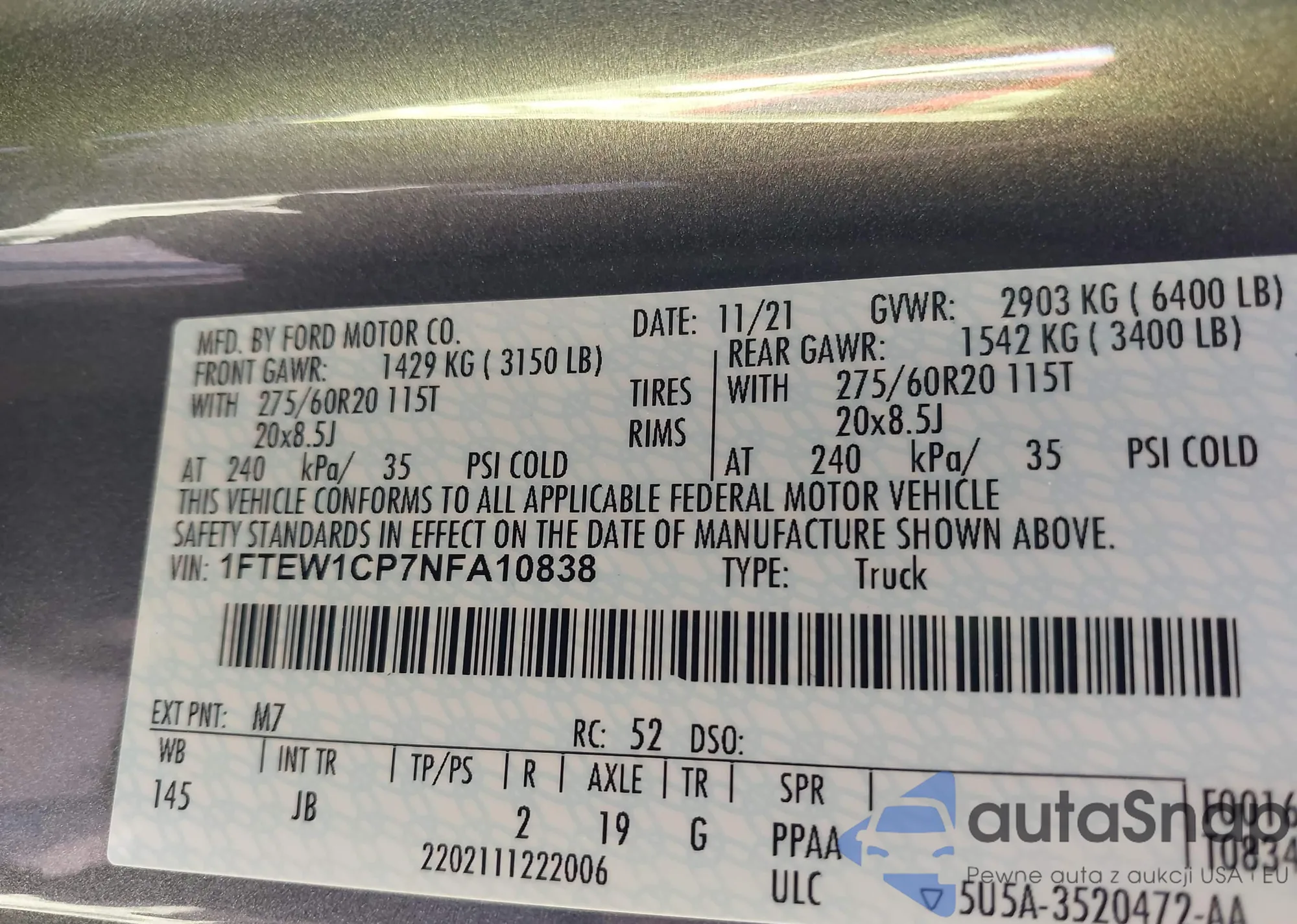 1FTEW1CP7NFA10838 IAAI