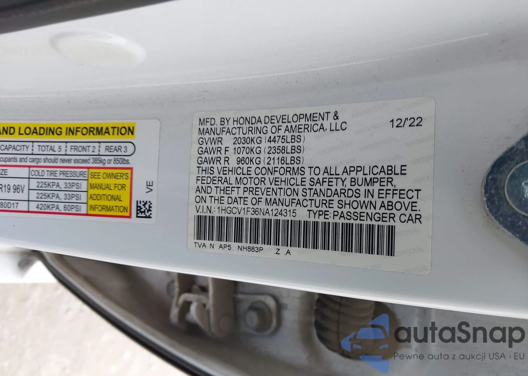 • VIN: 1HGCV1F36NA124315