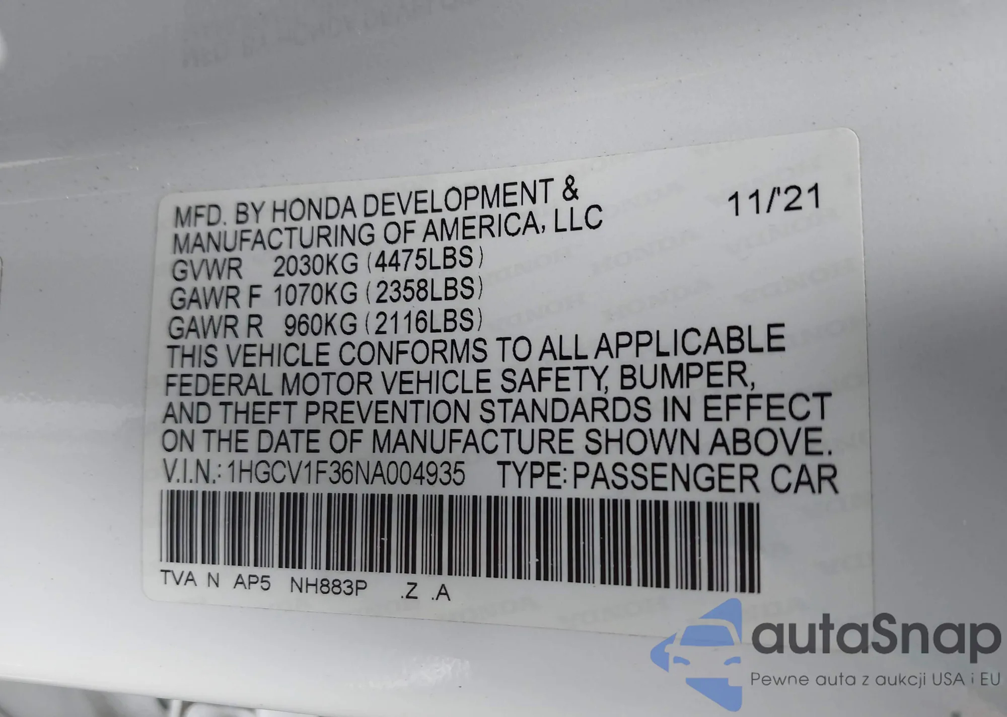 VIN: 1HGCV1F36NA004935