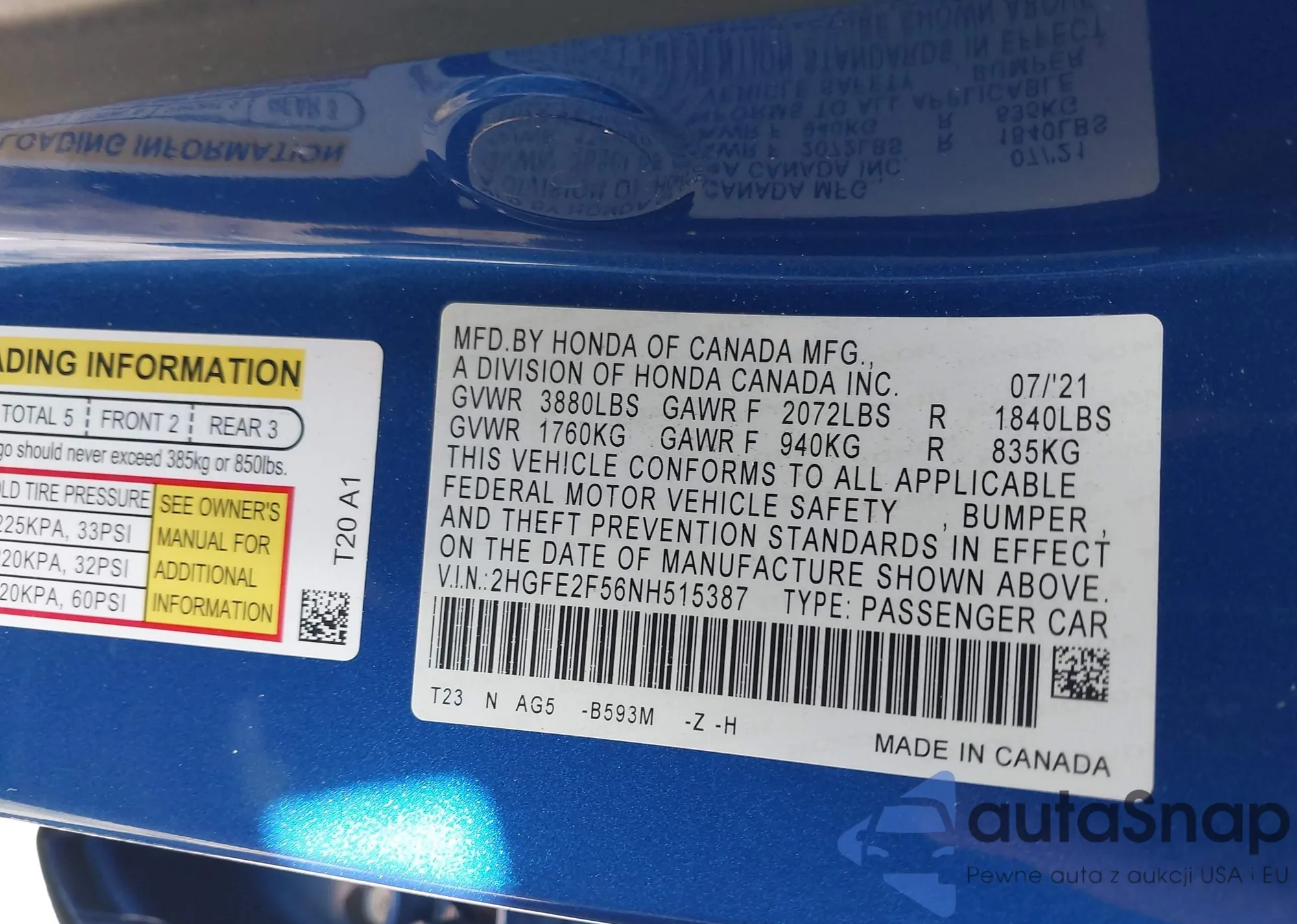 VIN: 2HGFE2F56NH515387