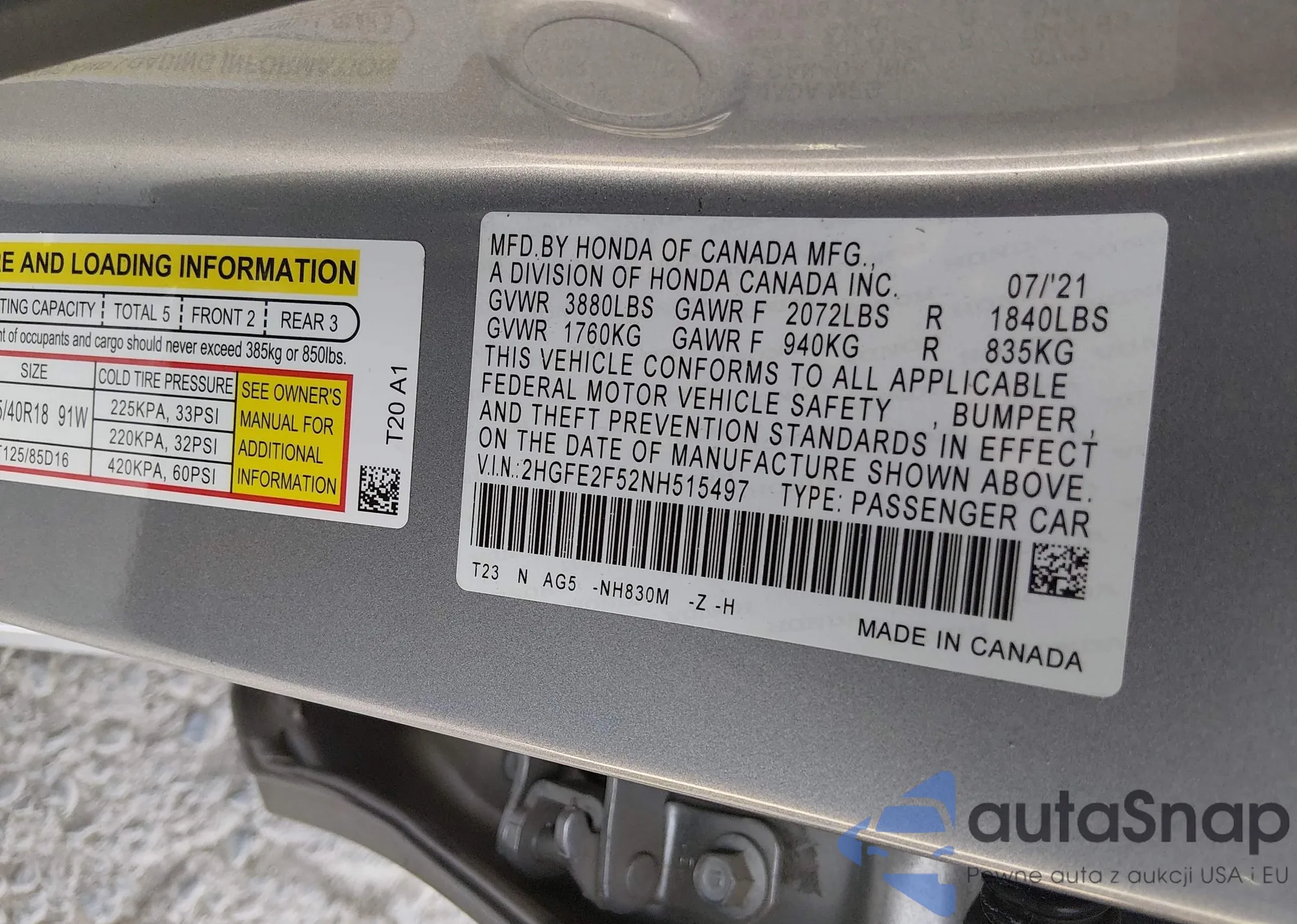 Samochód Honda Civic 2022 (VIN 2HGFE2F52NH515497) nie był wcześniej licytowany. Dokumenty są czyste, przebieg odpowiada lub jest niższy niż średnia rynku. Sprzedaje go firma ubezpieczeniowa – polecamy zakup. Dostawa do portu zajmie ok. 6–8 tygodni.