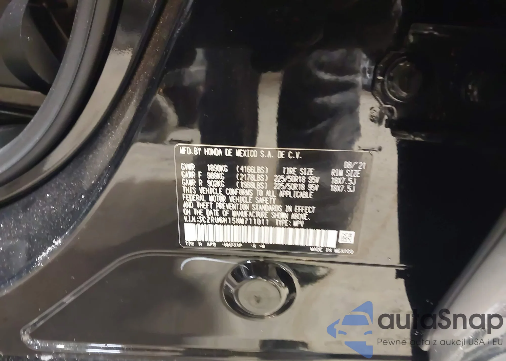 Samochód Honda HR-V 2022 (VIN 3CZRU6H15NM711011) nie był wcześniej licytowany. Dokumenty są czyste, przebieg odpowiada lub jest niższy niż średnia rynku. Sprzedaje go firma ubezpieczeniowa – polecamy zakup. Dostawa do portu zajmie ok. 6–8 tygodni.
