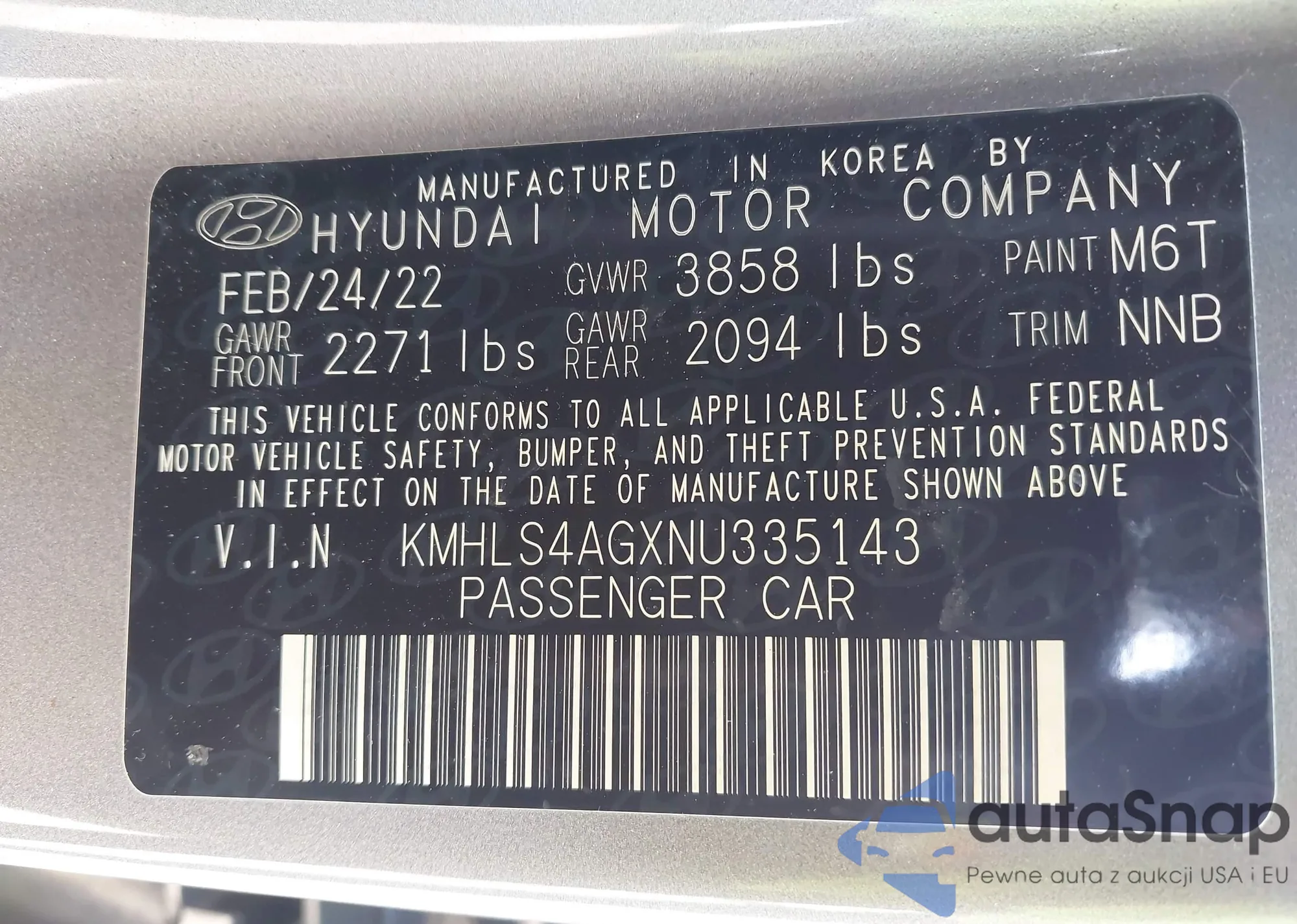 • VIN: KMHLS4AGXNU335143