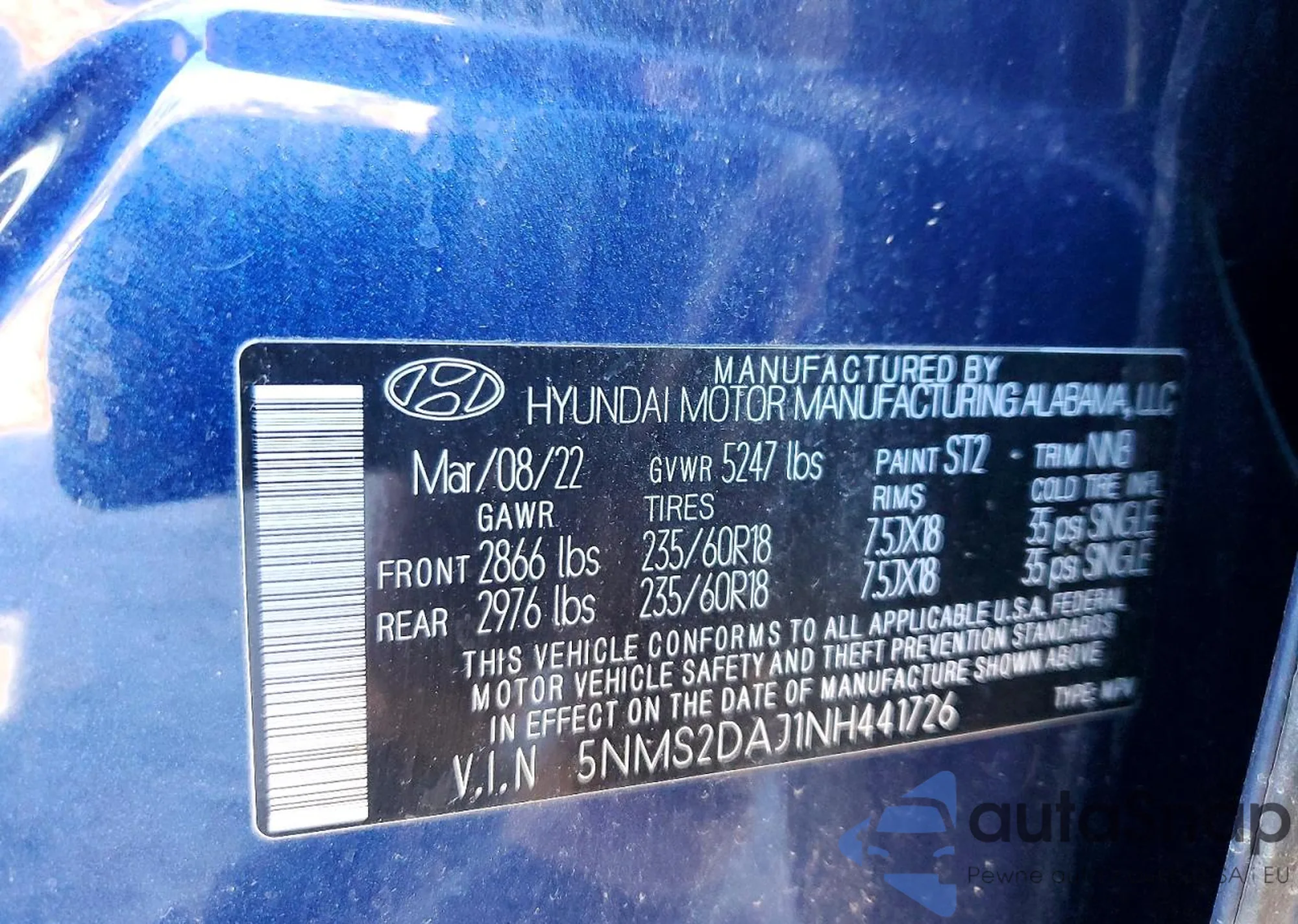 VIN: 5NMS2DAJ1NH441726
