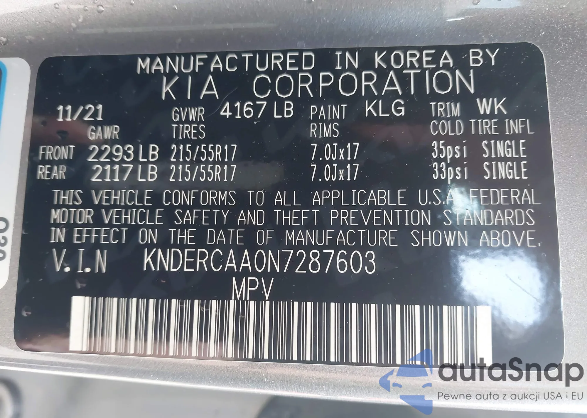 • VIN: KNDERCAA0N7287603