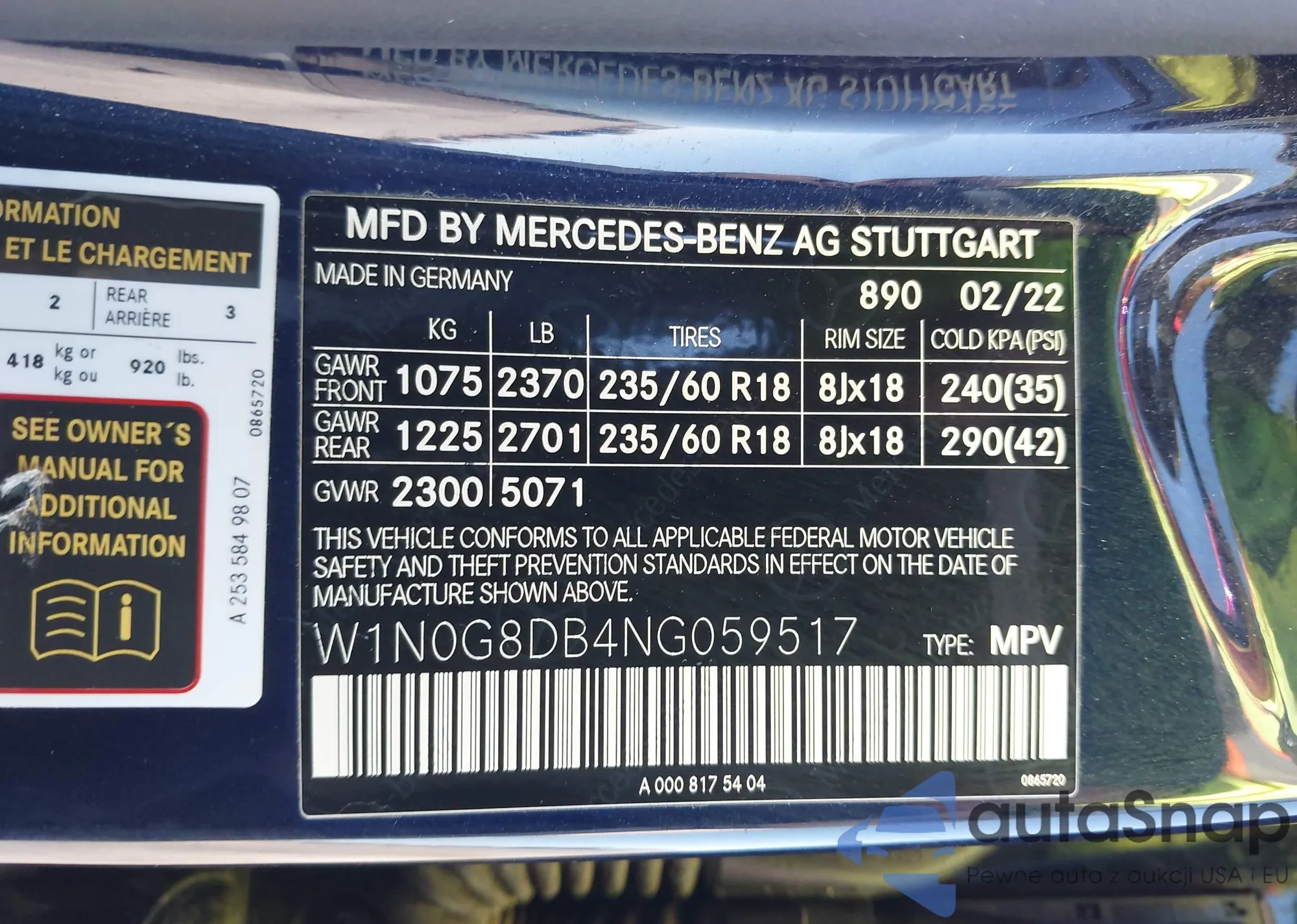 • VIN: W1N0G8DB4NG059517