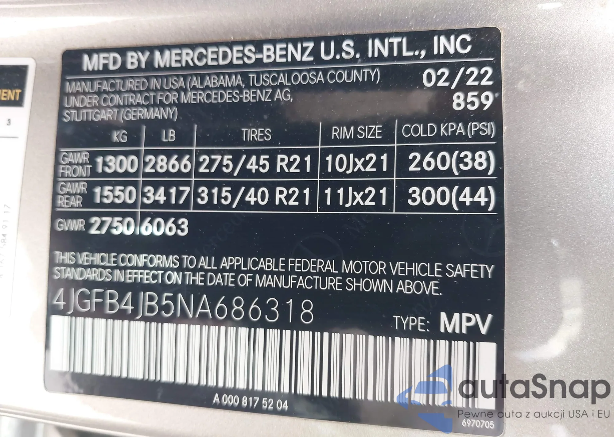 • VIN: 4JGFB4JB5NA686318