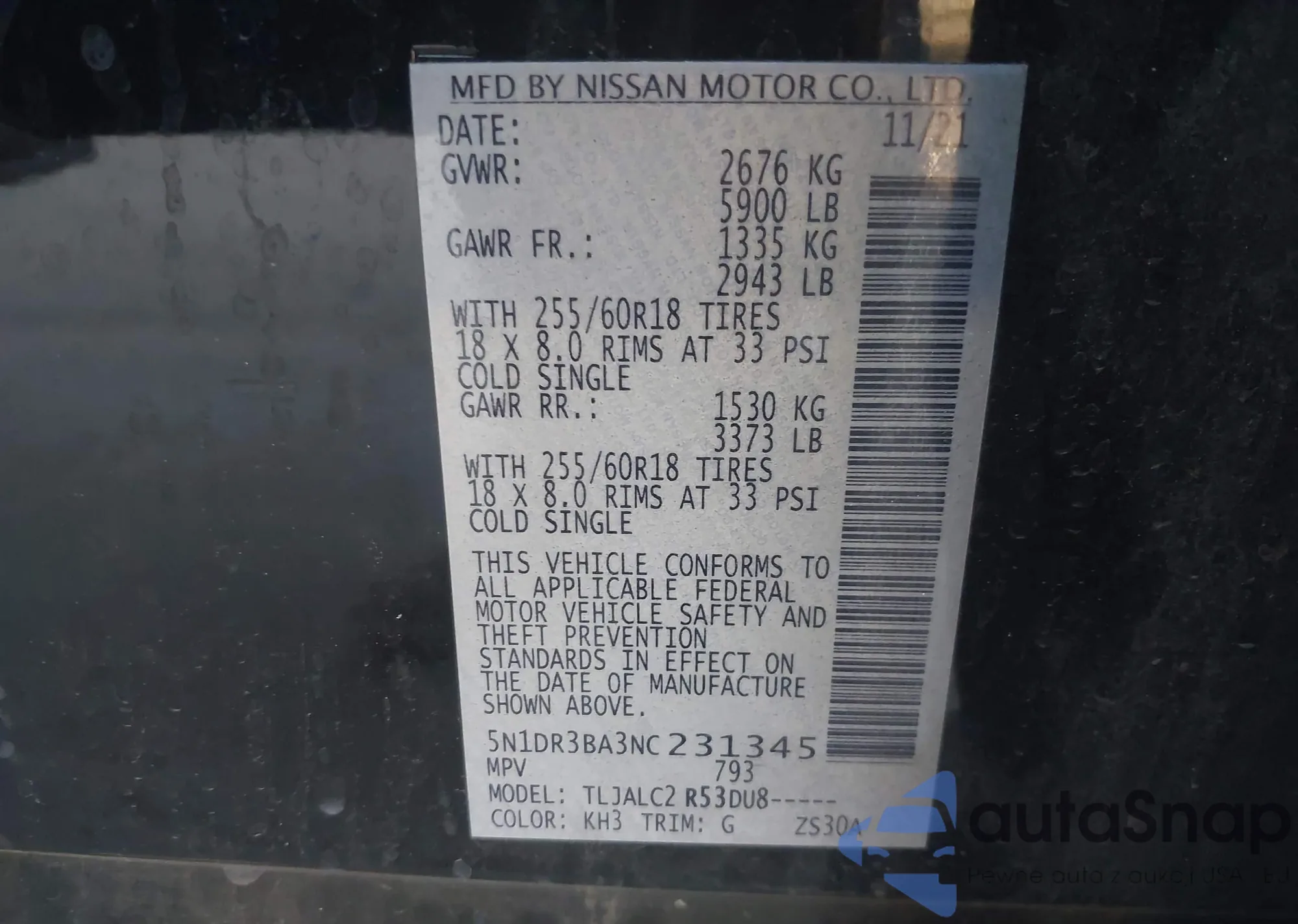 • VIN: 5N1DR3BA3NC231345