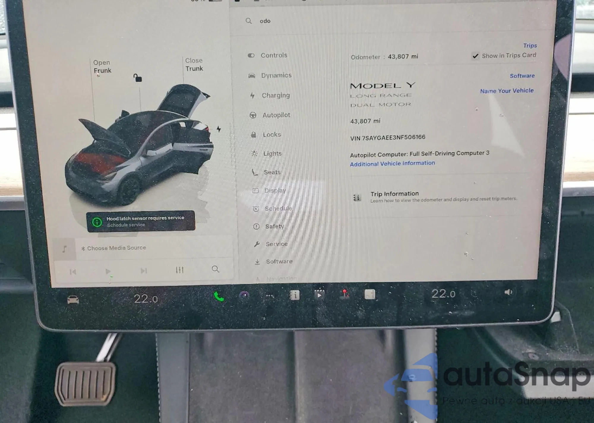 Samochód Tesla Model Y 2022 (VIN 7SAYGAEE3NF506166) nie był wcześniej licytowany. Dokumenty są czyste, przebieg odpowiada lub jest niższy niż średnia rynku. Sprzedaje go firma ubezpieczeniowa – polecamy zakup. Dostawa do portu zajmie ok. 6–8 tygodni.