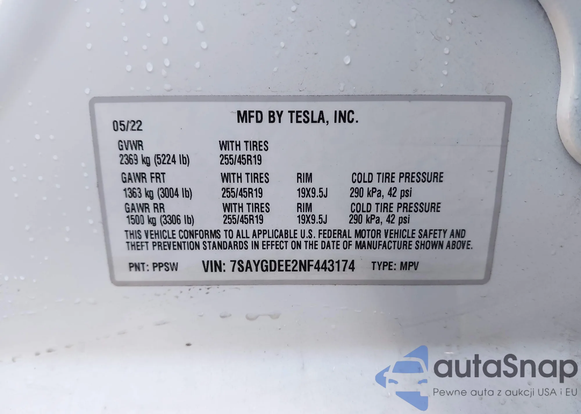 VIN: 7SAYGDEE2NF443174