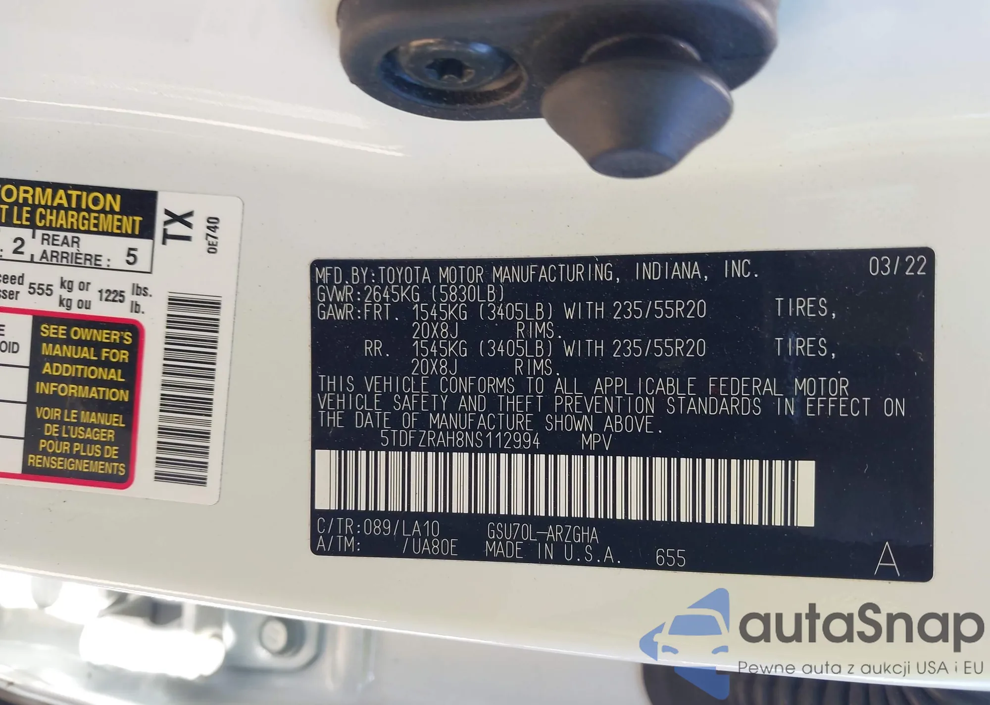VIN: 5TDFZRAH8NS112994