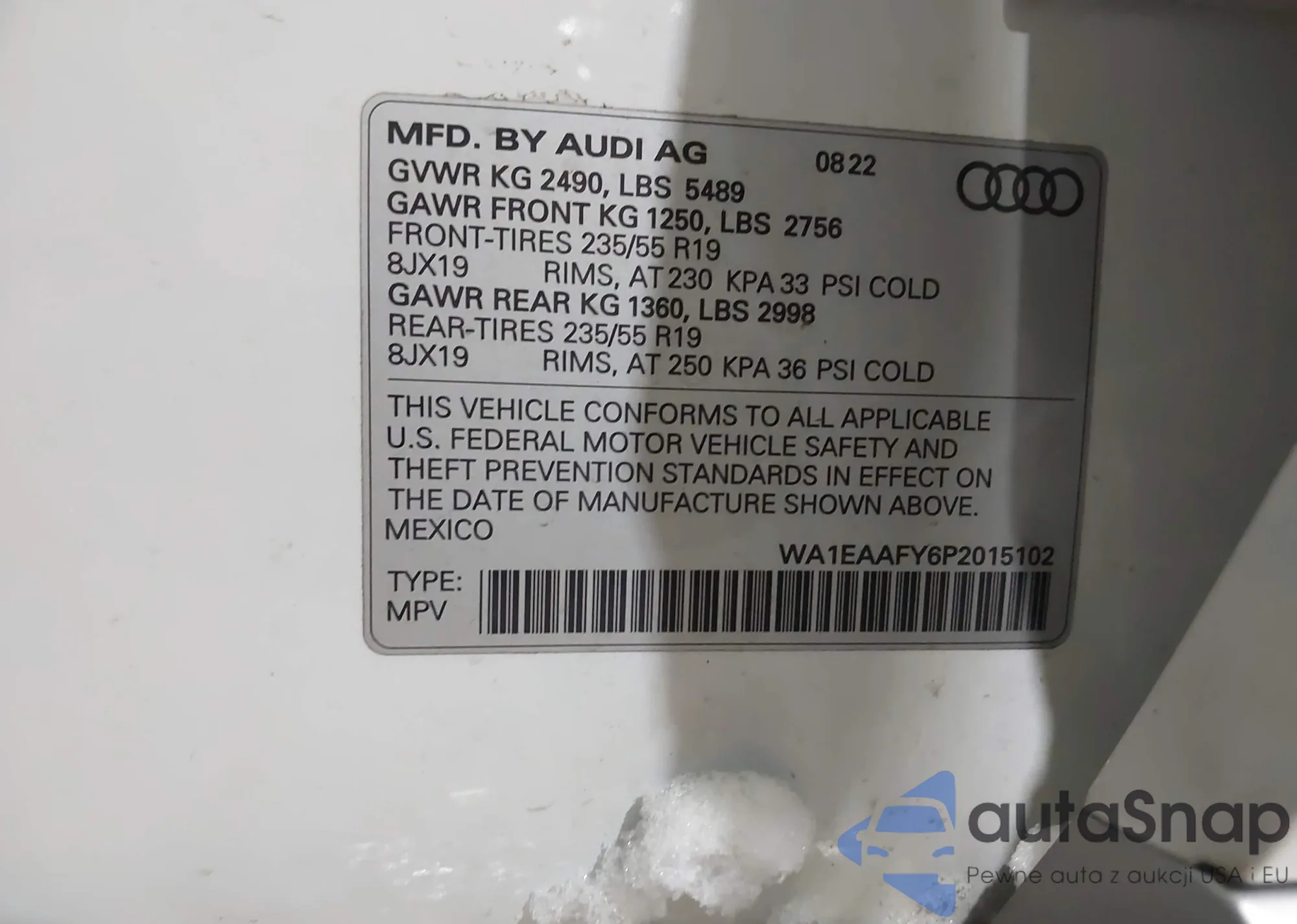 Samochód Audi Q5 2023 (VIN WA1EAAFY6P2015102) nie był wcześniej licytowany. Dokumenty są czyste, przebieg odpowiada lub jest niższy niż średnia rynku. Sprzedaje go firma ubezpieczeniowa – polecamy zakup. Dostawa do portu zajmie ok. 6–8 tygodni.