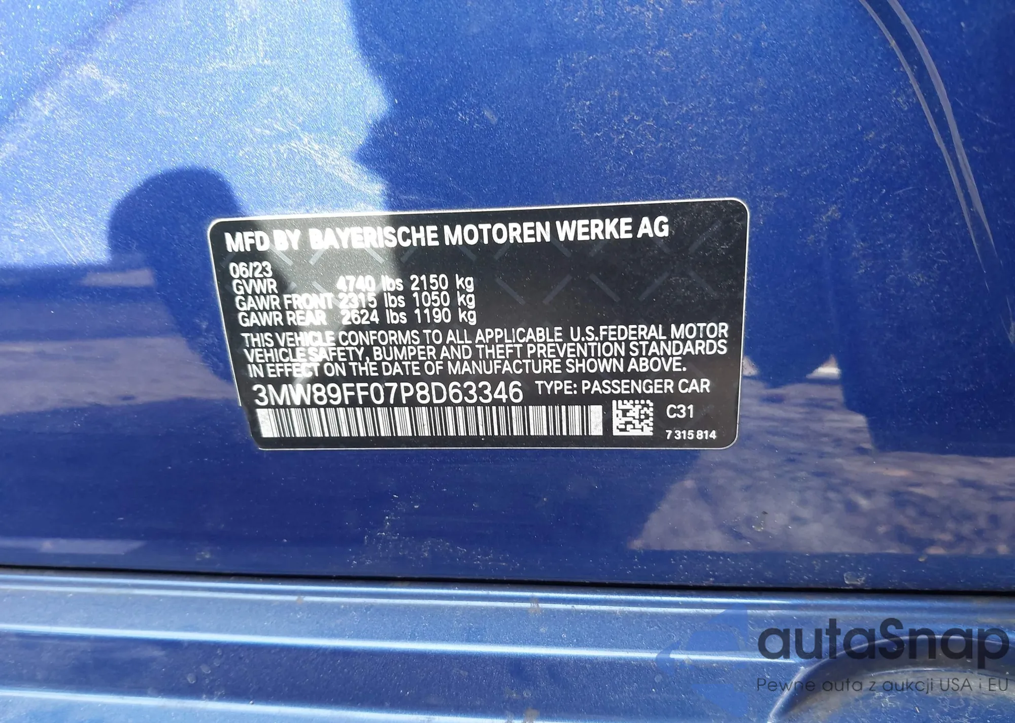 VIN: 3MW89FF07P8D63346