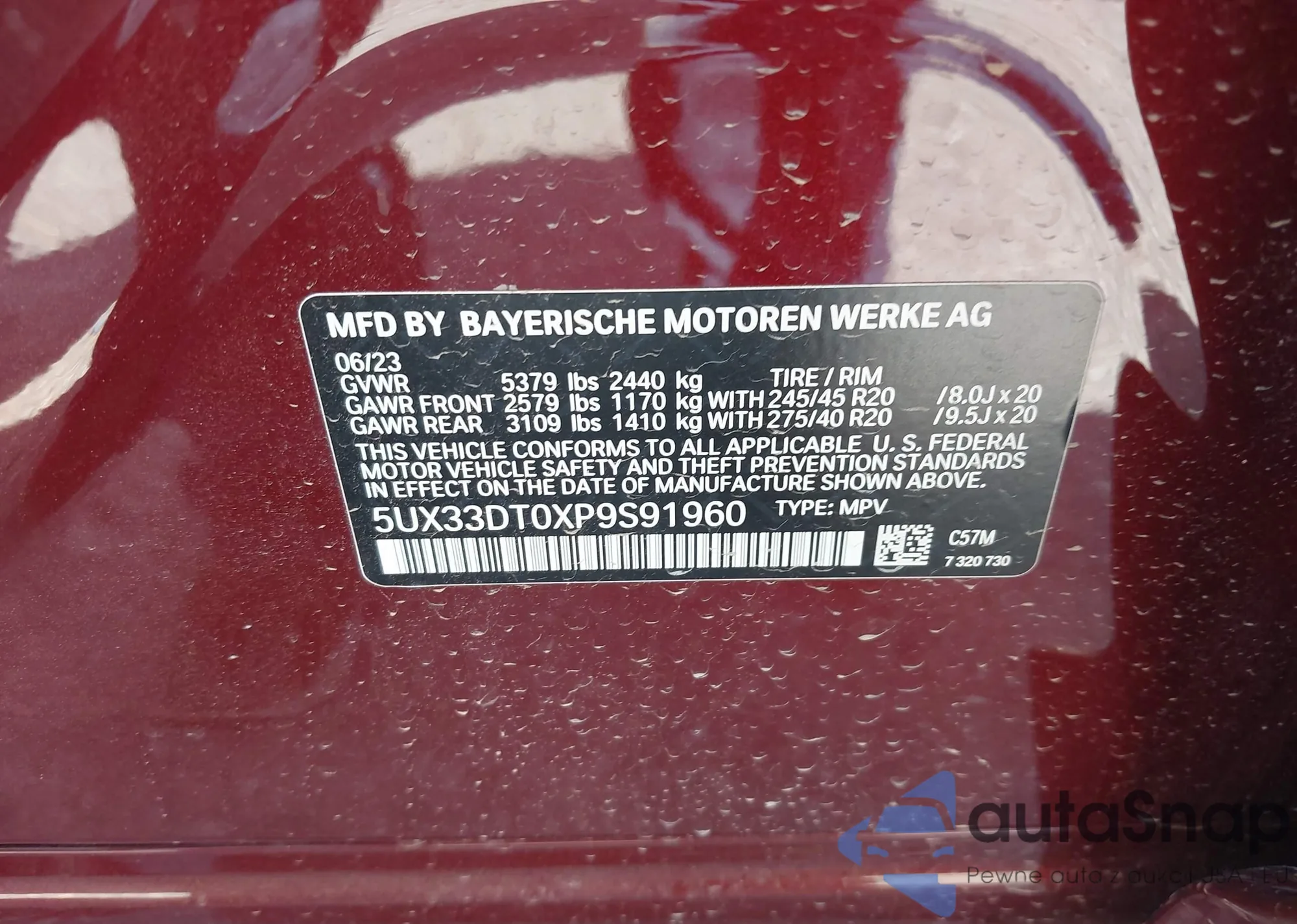 VIN: 5UX33DT0XP9S91960