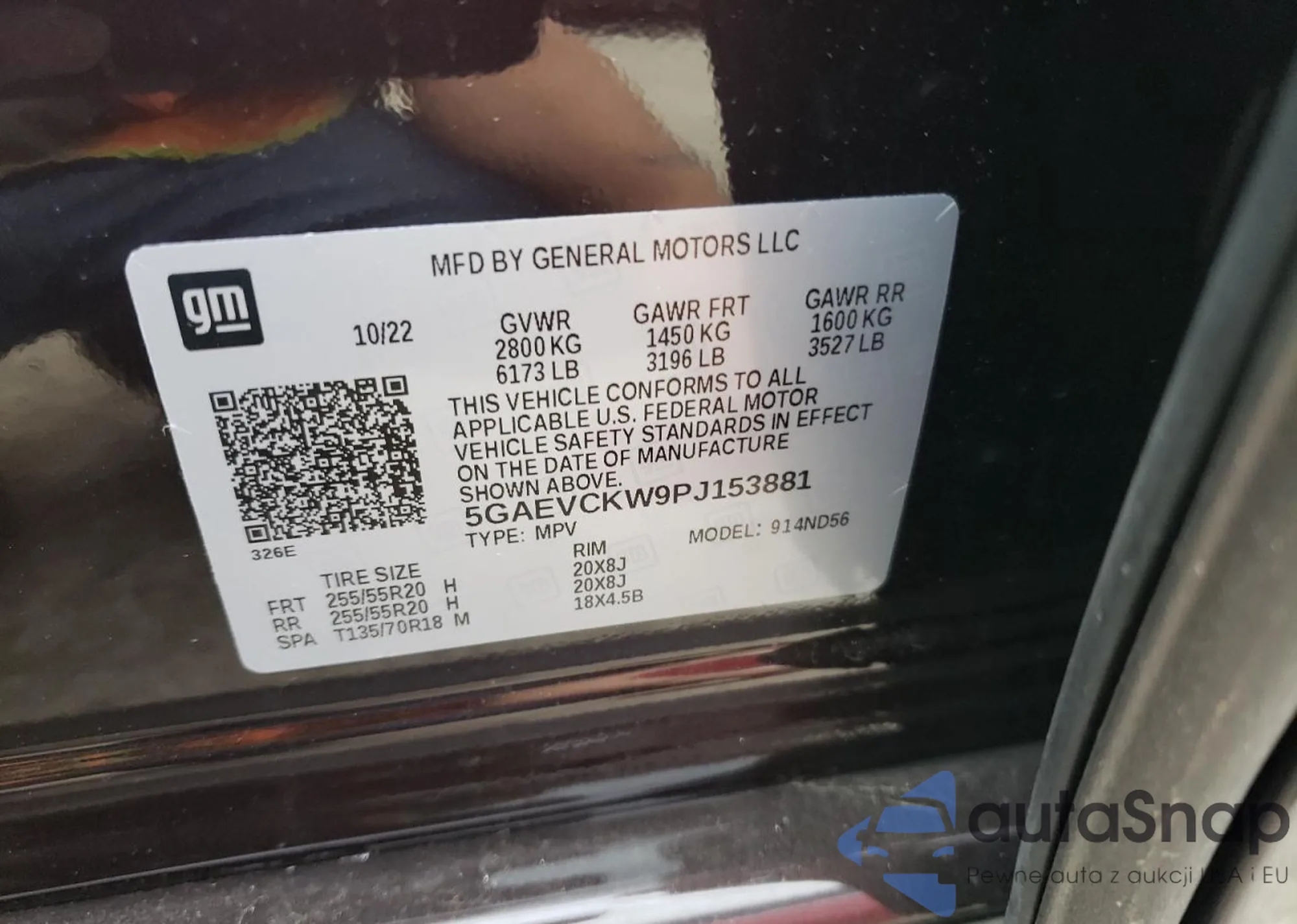 • VIN: 5GAEVCKW9PJ153881