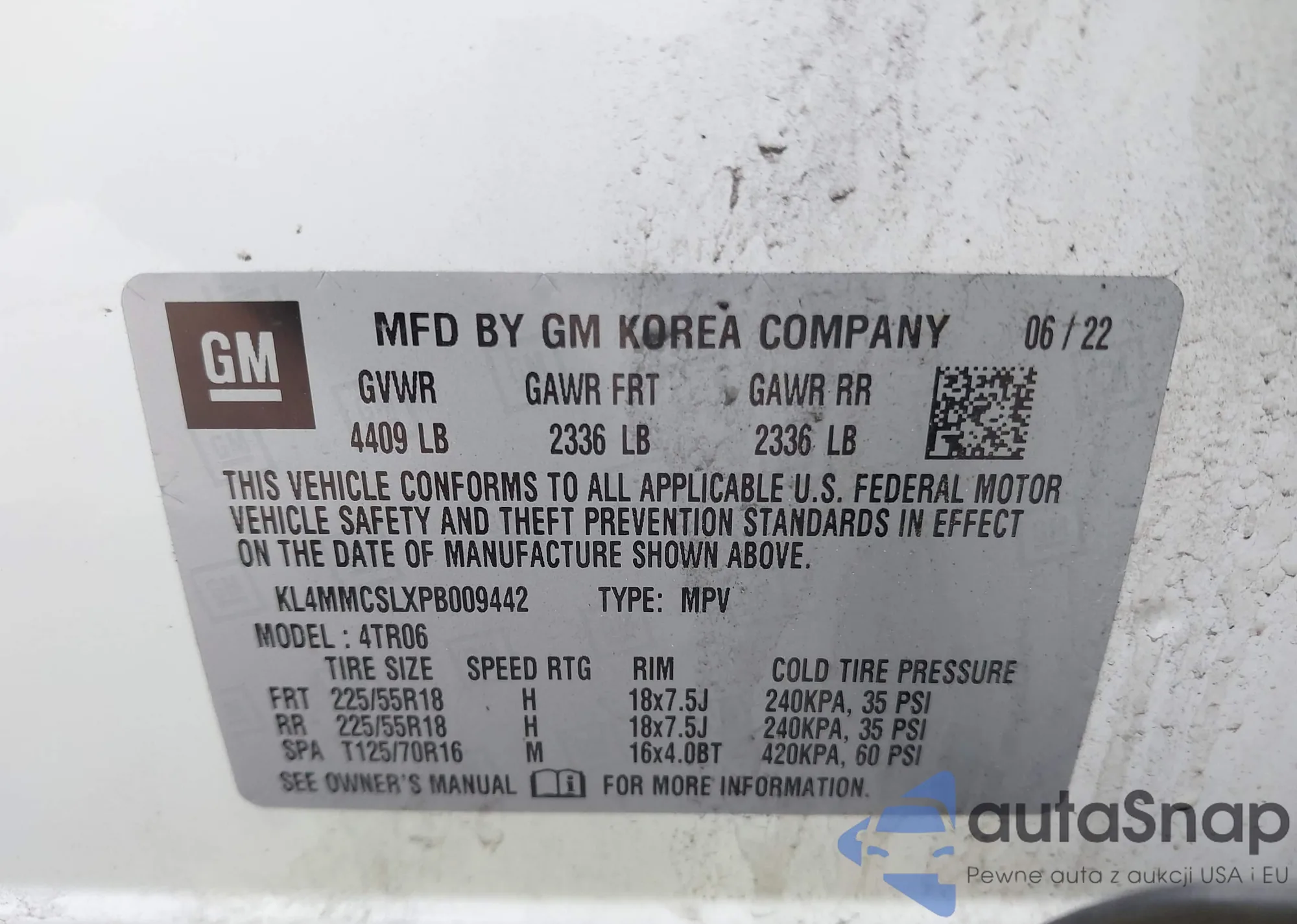 VIN: KL4MMCSLXPB009442