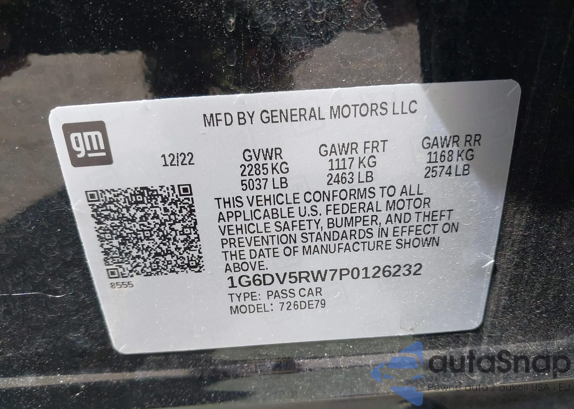 VIN: 1G6DV5RW7P0126232