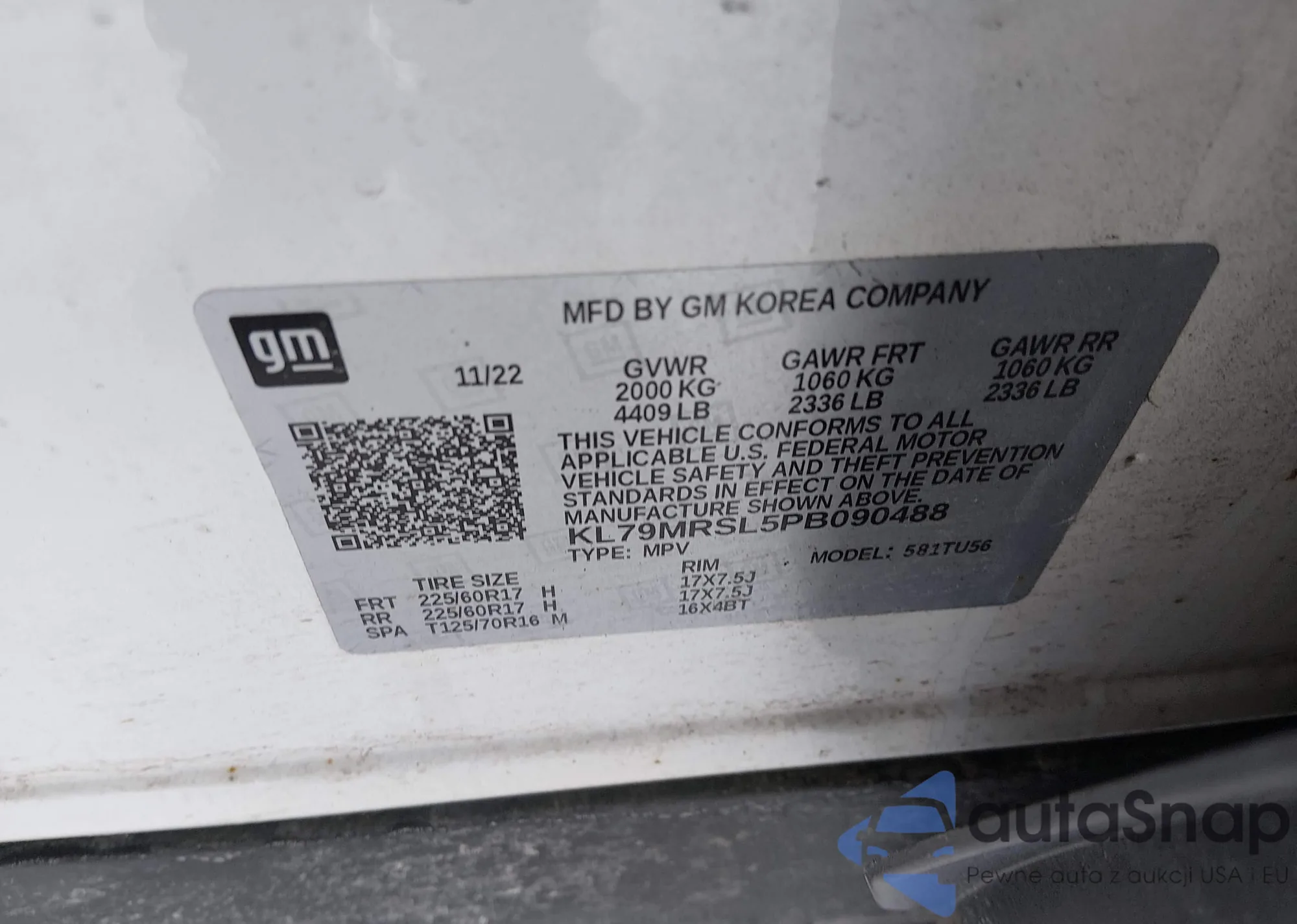 Samochód Chevrolet TrailBlazer 2023 (VIN KL79MRSL5PB090488) sprzedaje go niezweryfikowany sprzedawca. Zalecamy raport Carfax i potwierdzenie możliwości rejestracji pojazdu przed zakupem.