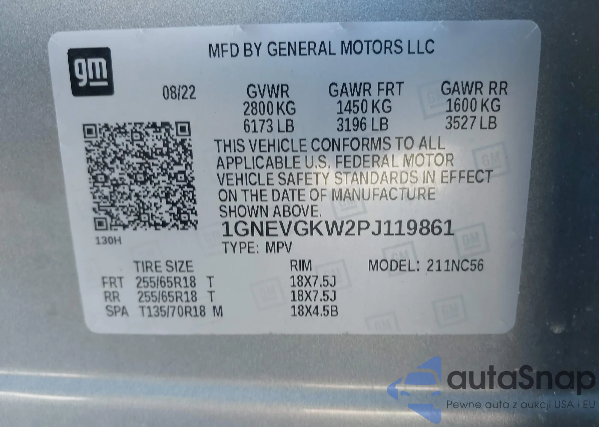 VIN: 1GNEVGKW2PJ119861