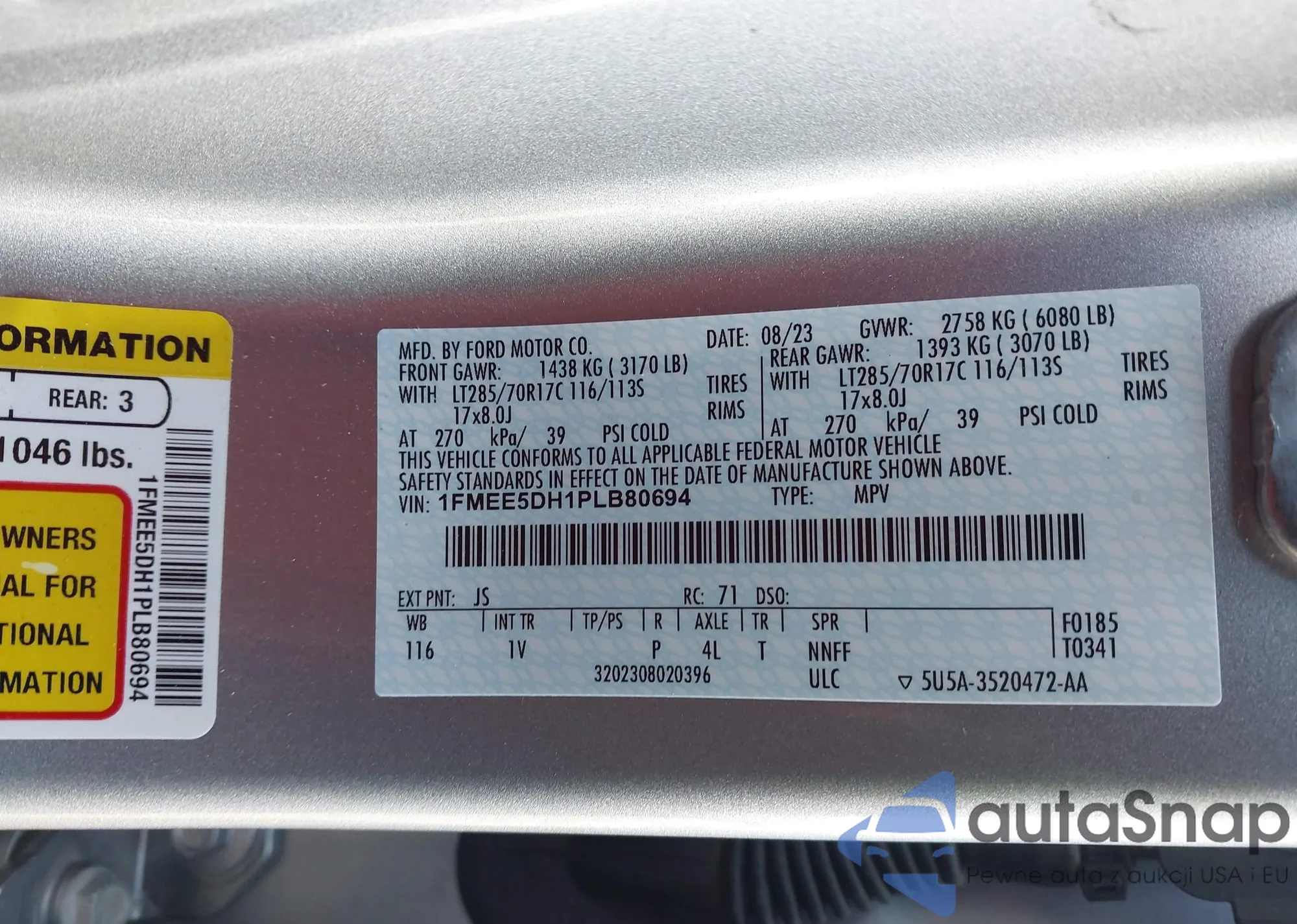 VIN: 1FMEE5DH1PLB80694