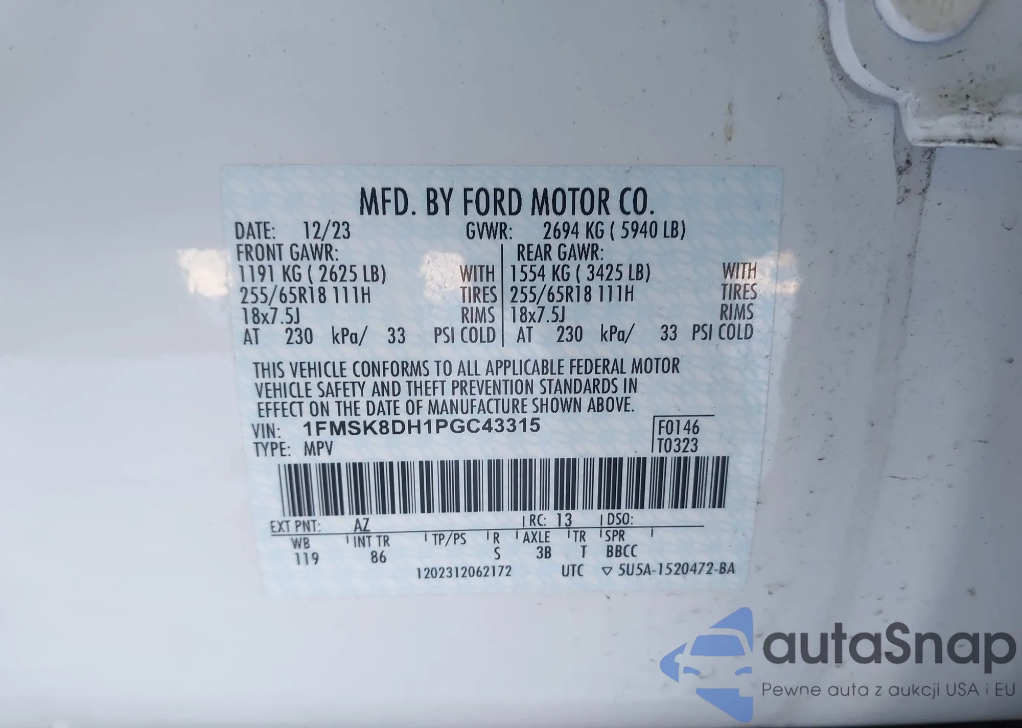 Samochód Ford Explorer 2023 (VIN 1FMSK8DH1PGC43315) nie był wcześniej licytowany. Dokumenty są czyste, przebieg odpowiada lub jest niższy niż średnia rynku. Sprzedaje go firma ubezpieczeniowa – polecamy zakup. Dostawa do portu zajmie ok. 6–8 tygodni.