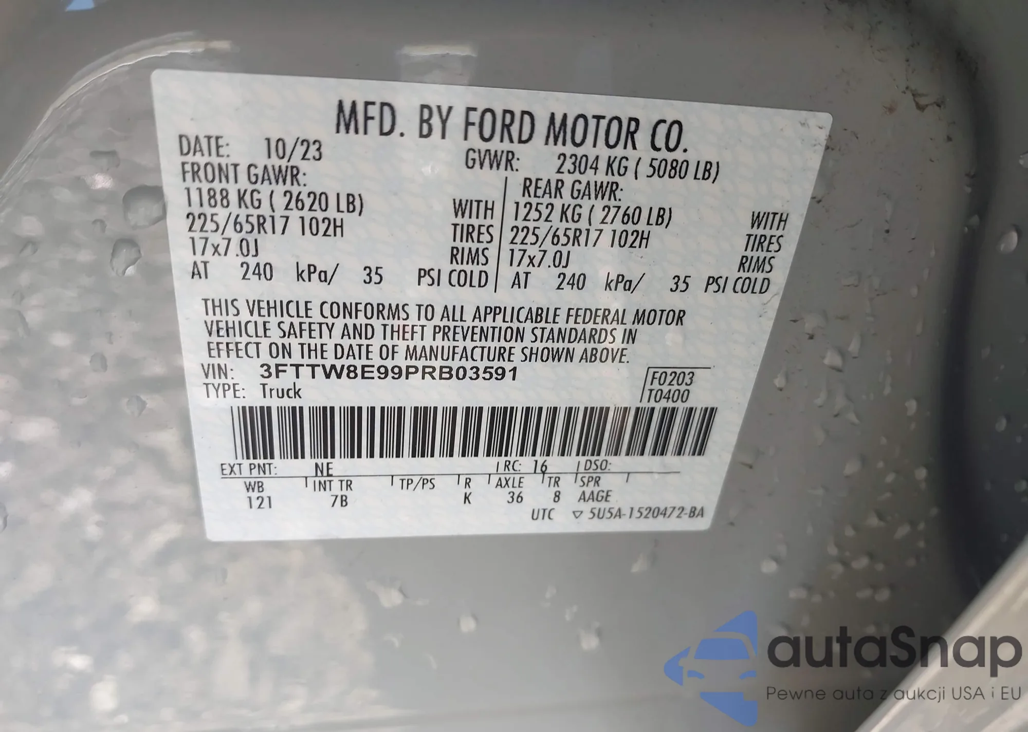• VIN: 3FTTW8E99PRB03591