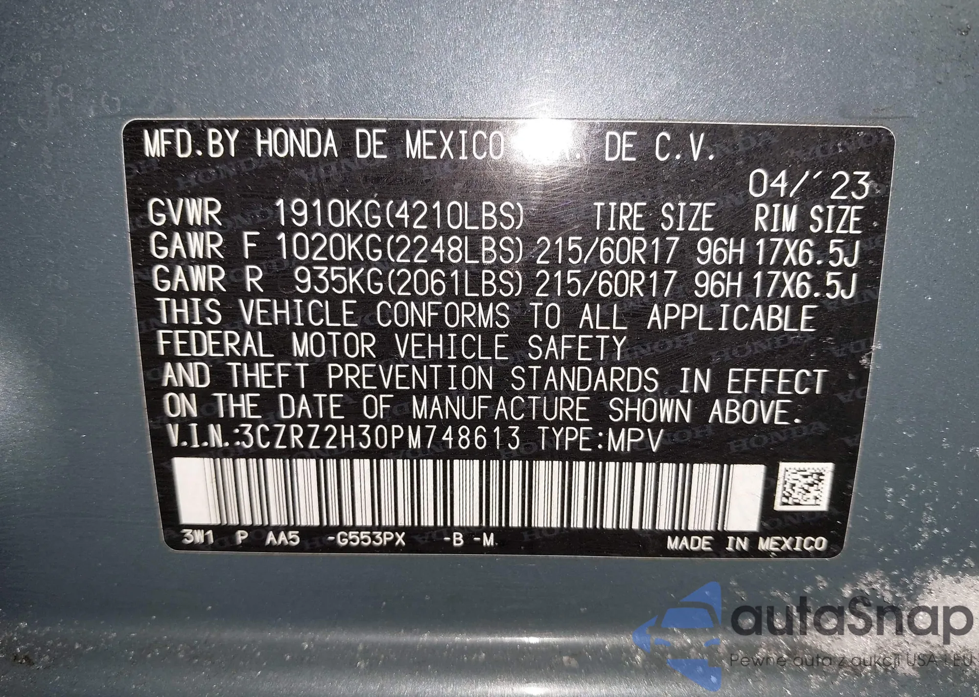 VIN: 3CZRZ2H30PM748613