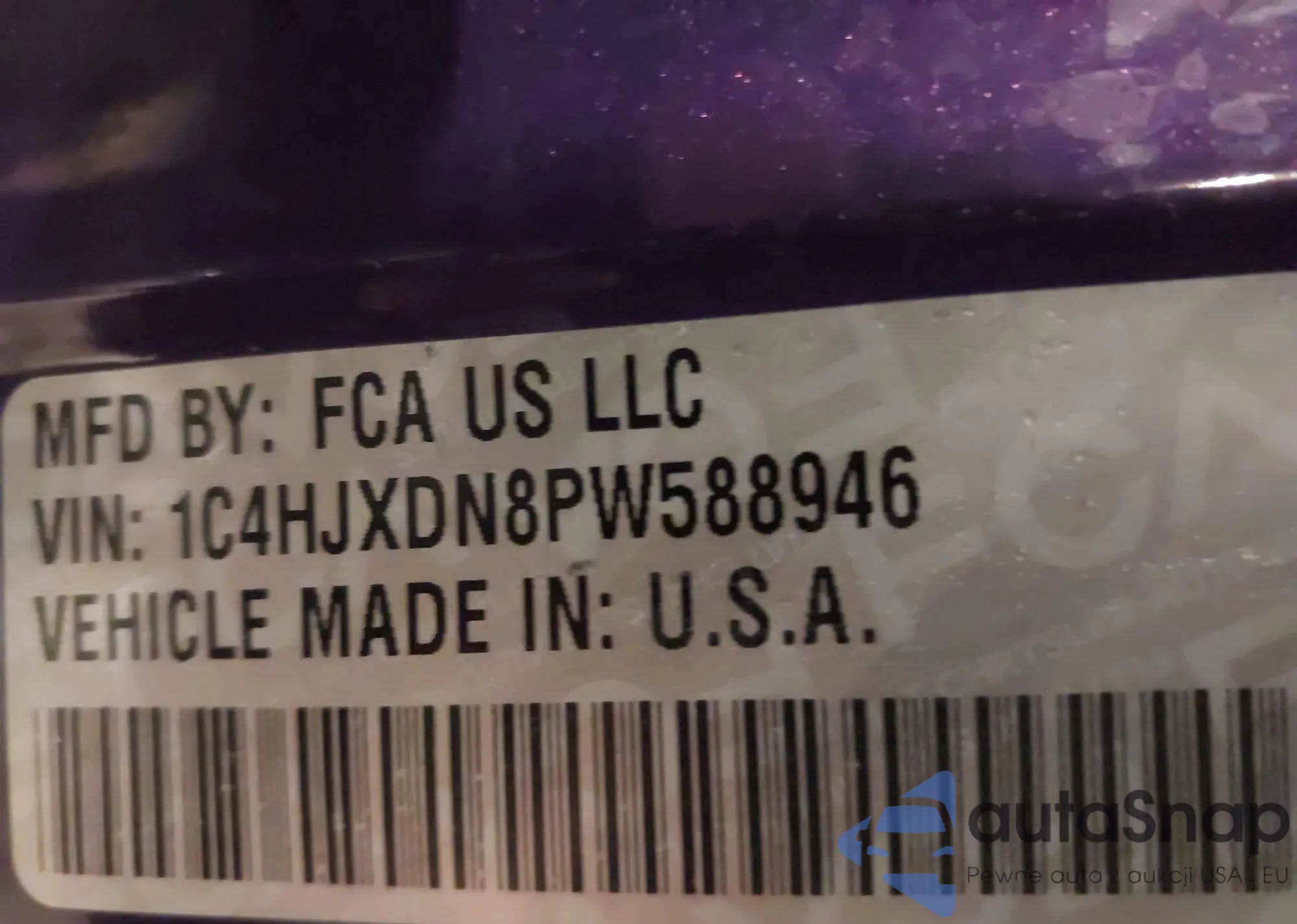 Samochód Jeep Wrangler 2023 (VIN 1C4HJXDN8PW588946) nie był wcześniej licytowany. Dokumenty są czyste, przebieg odpowiada lub jest niższy niż średnia rynku. Sprzedaje go firma ubezpieczeniowa – polecamy zakup. Dostawa do portu zajmie ok. 6–8 tygodni.