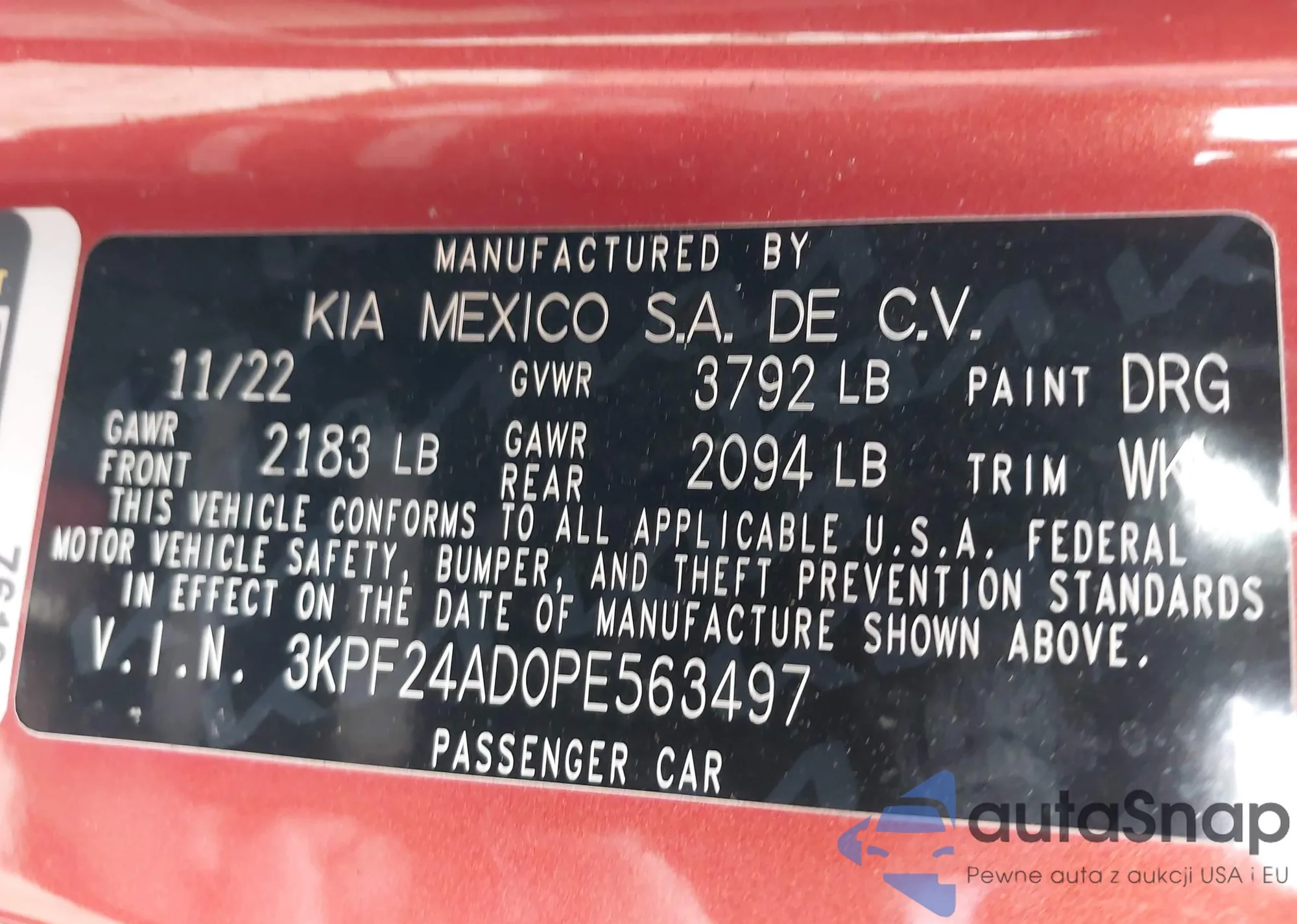 • VIN: 3KPF24AD0PE563497