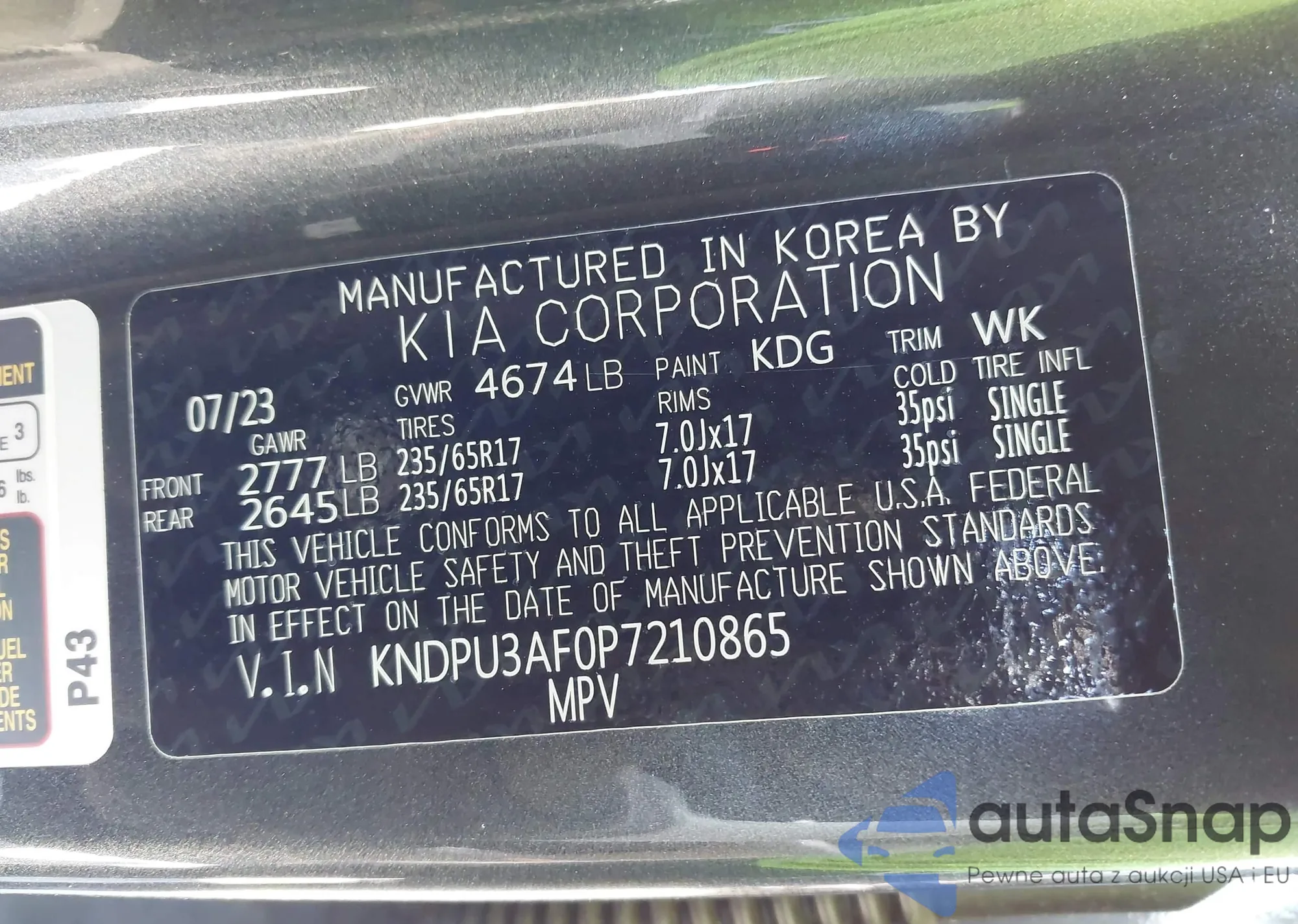 VIN: KNDPU3AF0P7210865