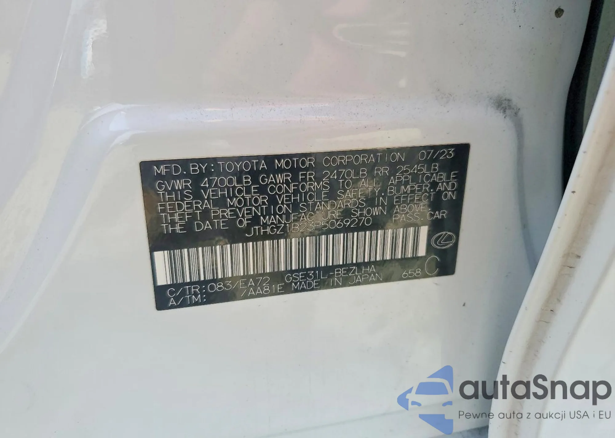 Samochód Lexus IS 2023 (VIN JTHGZ1B23P5069270) nie był wcześniej licytowany. Dokumenty są czyste, przebieg odpowiada lub jest niższy niż średnia rynku. Sprzedaje go firma ubezpieczeniowa – polecamy zakup. Dostawa do portu zajmie ok. 6–8 tygodni.