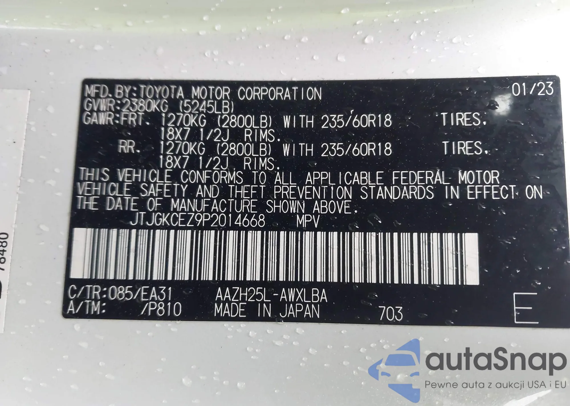 • VIN: JTJGKCEZ9P2014668