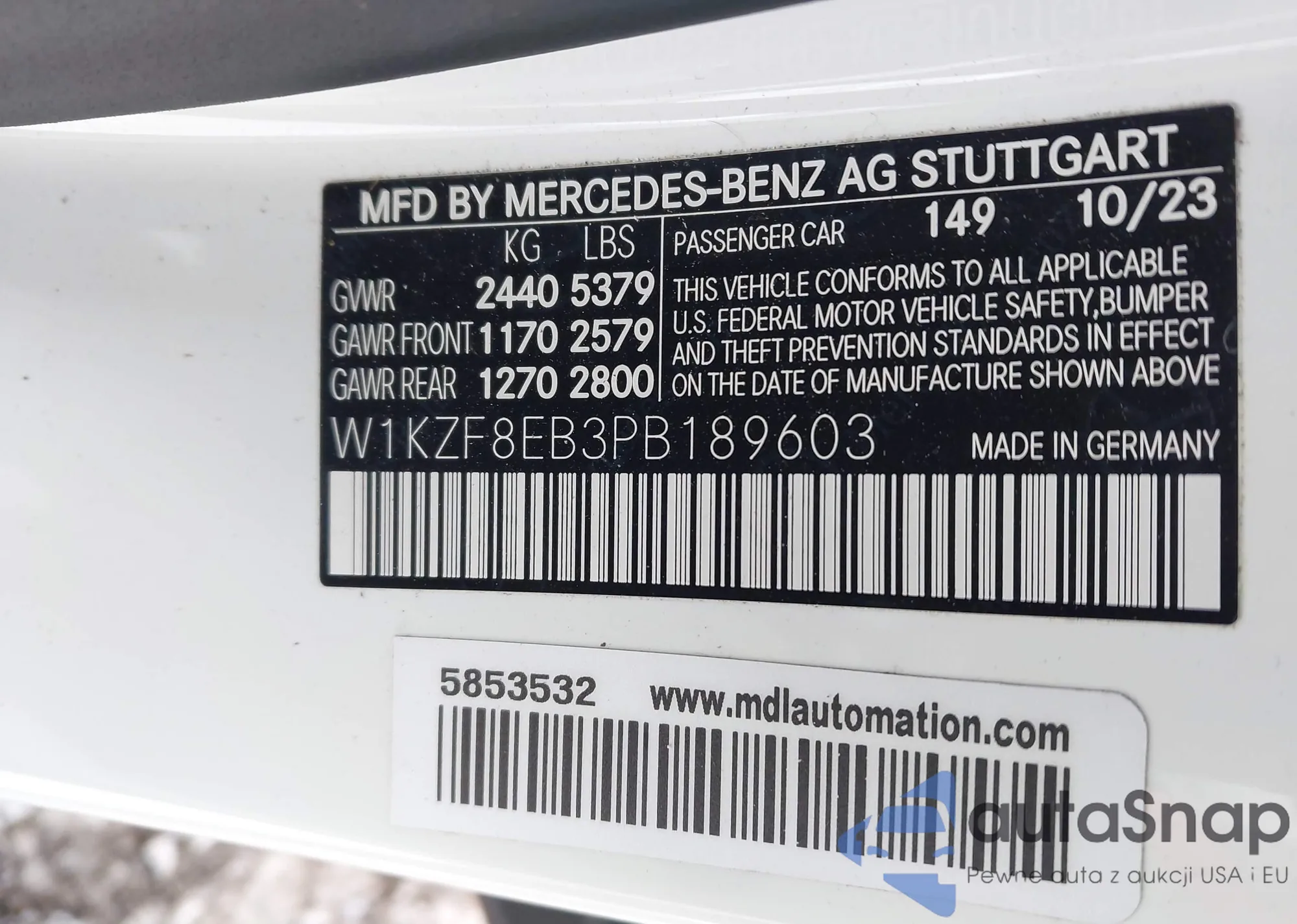 • VIN: W1KZF8EB3PB189603