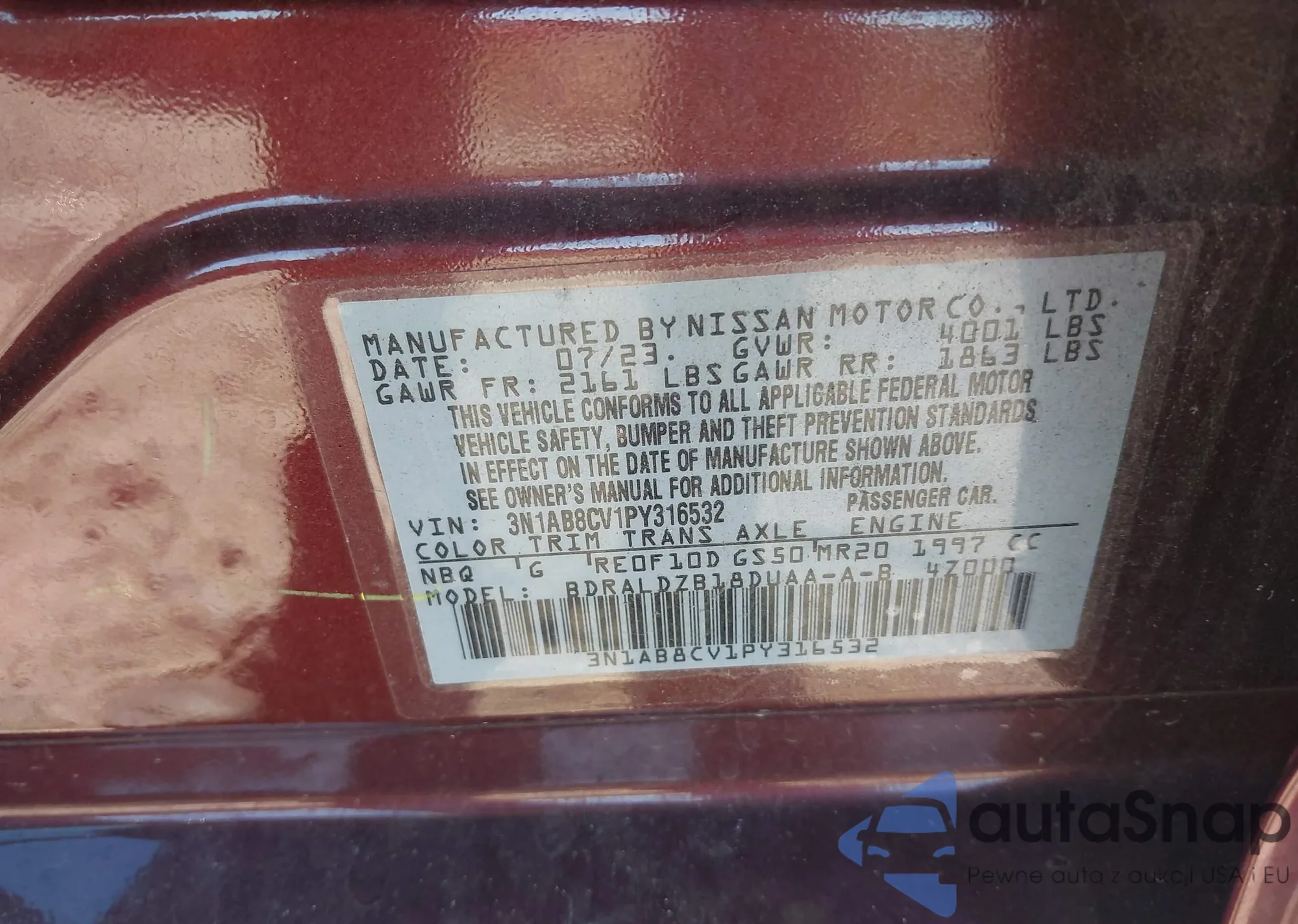 • VIN: 3N1AB8CV1PY316532