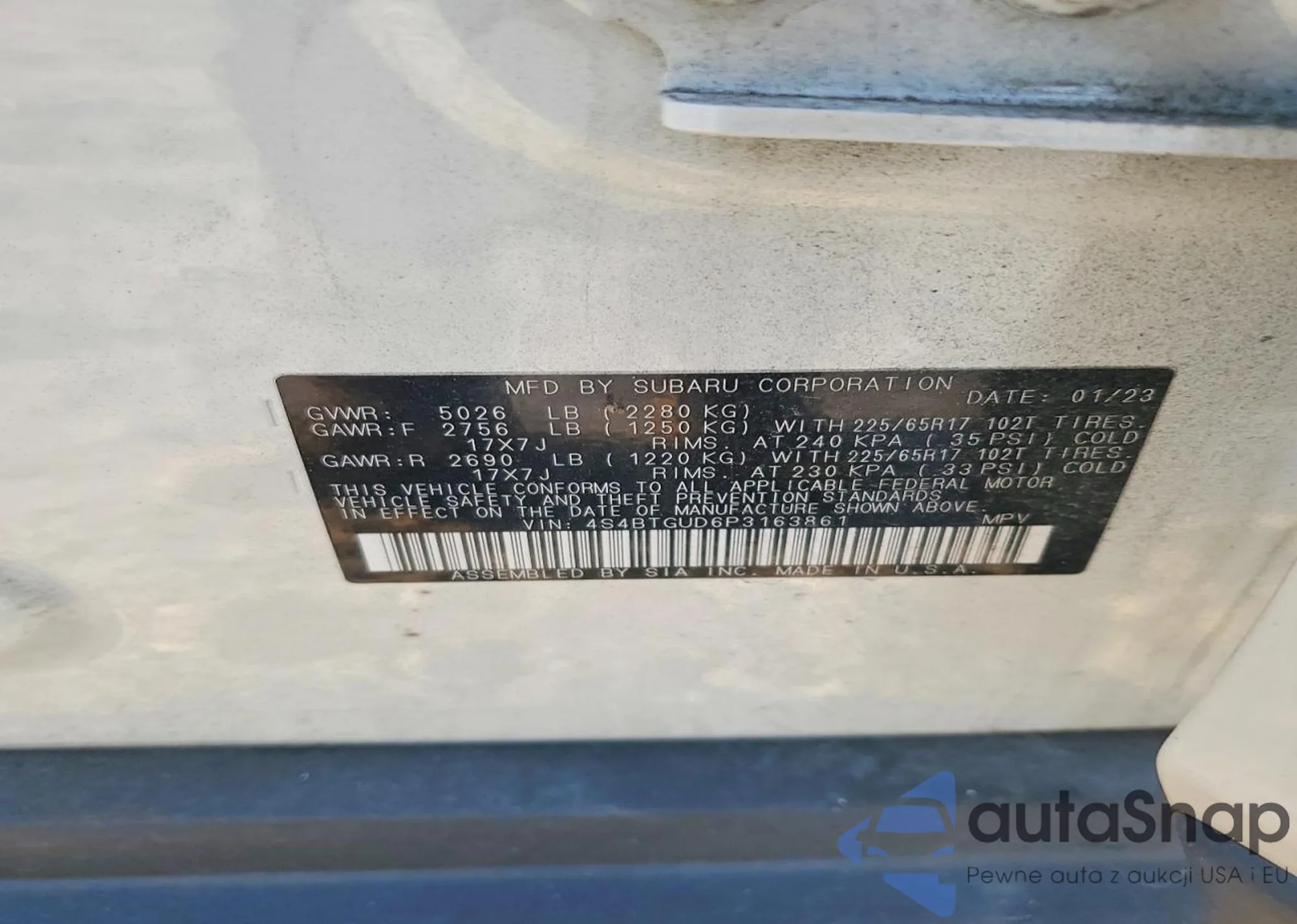 Samochód Subaru Outback 2023 (VIN 4S4BTGUD6P3163861) sprzedaje go niezweryfikowany sprzedawca. Zalecamy raport Carfax i potwierdzenie możliwości rejestracji pojazdu przed zakupem.