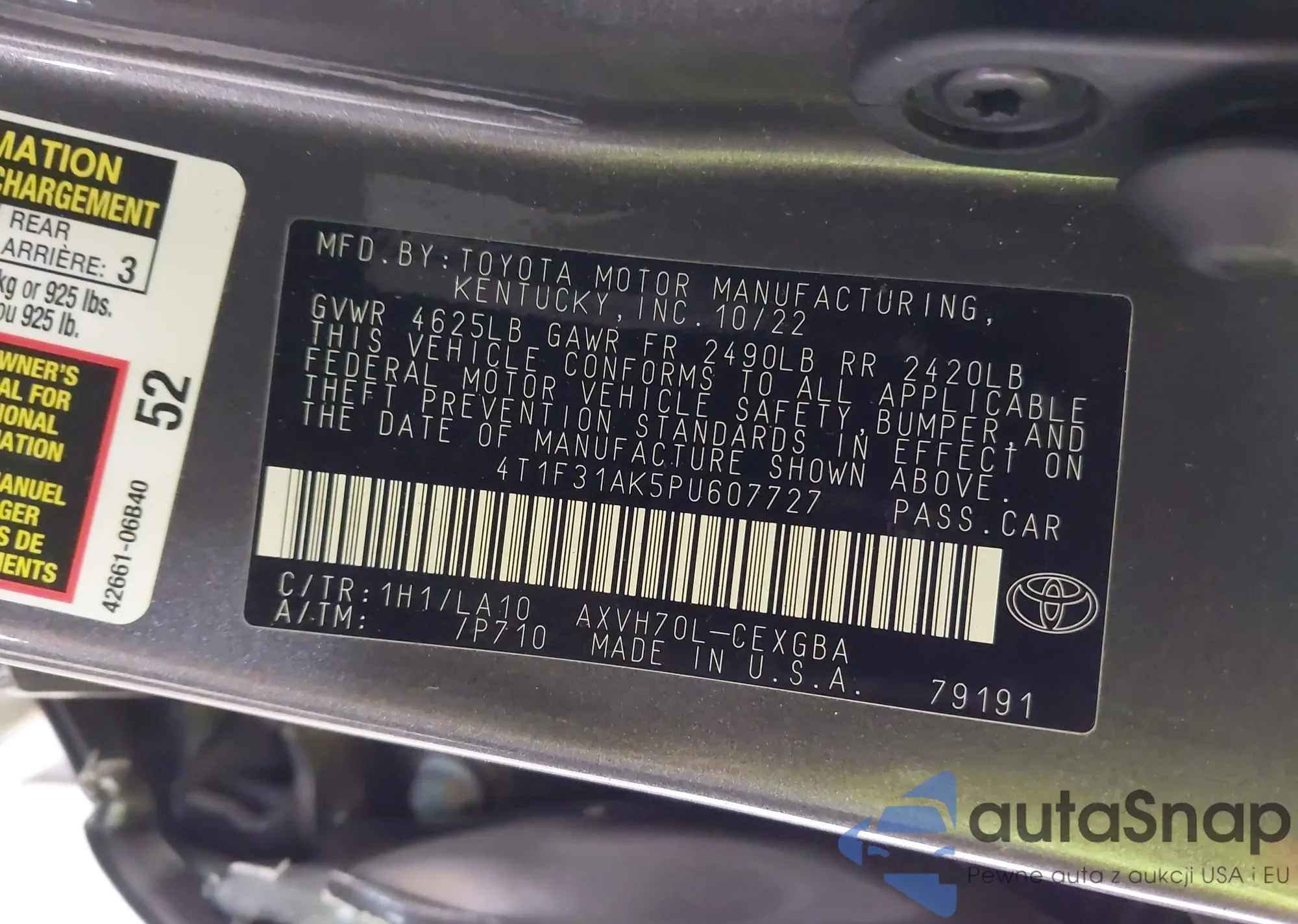 VIN: 4T1F31AK5PU607727