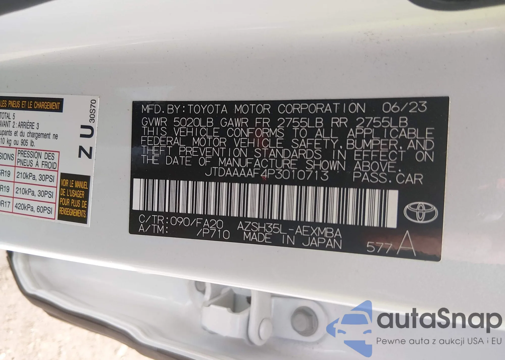 • VIN: JTDAAAAF4P3010713