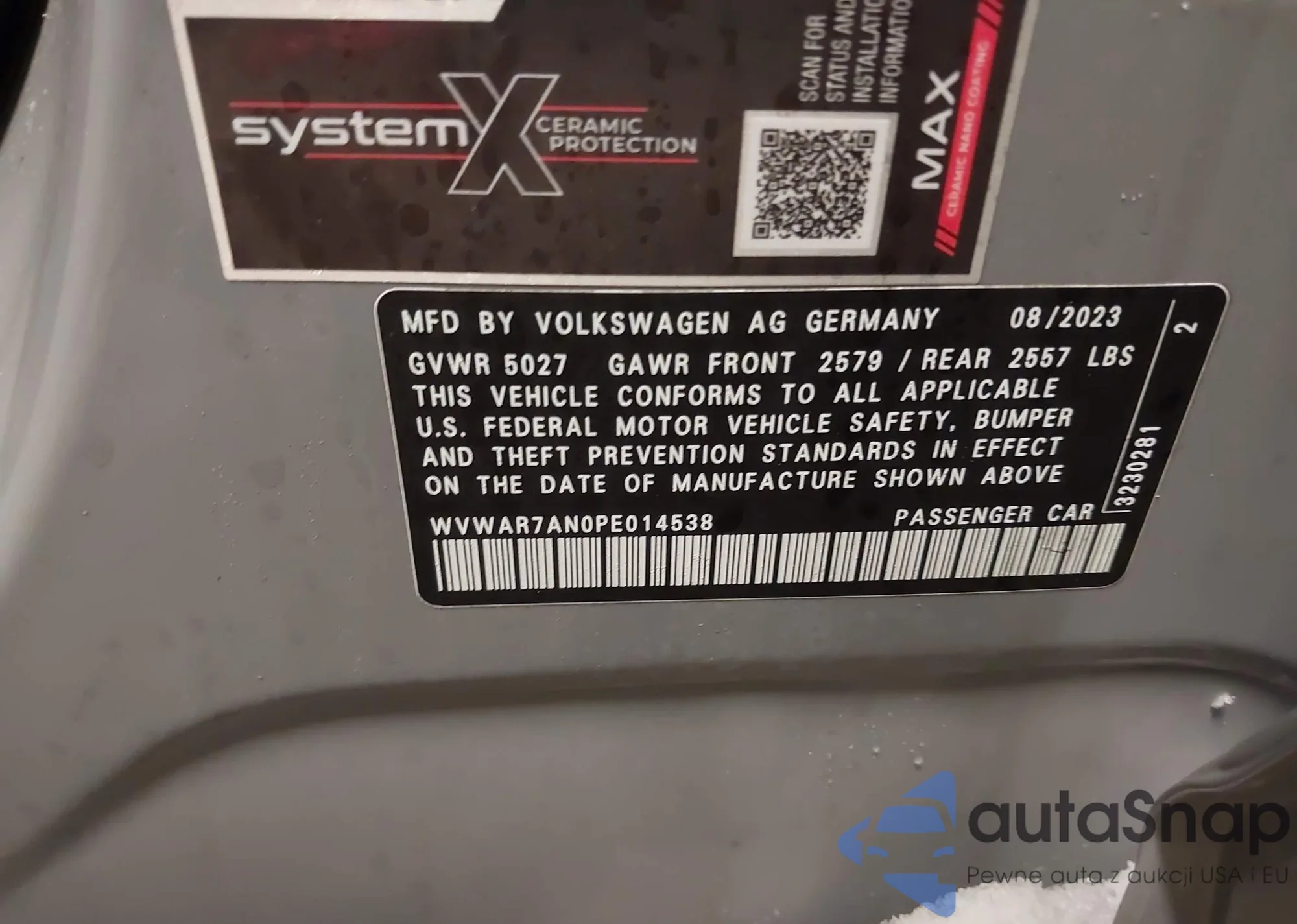 Samochód Volkswagen Arteon 2023 (VIN WVWAR7AN0PE014538) nie był wcześniej licytowany. Dokumenty są czyste, przebieg odpowiada lub jest niższy niż średnia rynku. Sprzedaje go firma ubezpieczeniowa – polecamy zakup. Dostawa do portu zajmie ok. 6–8 tygodni.